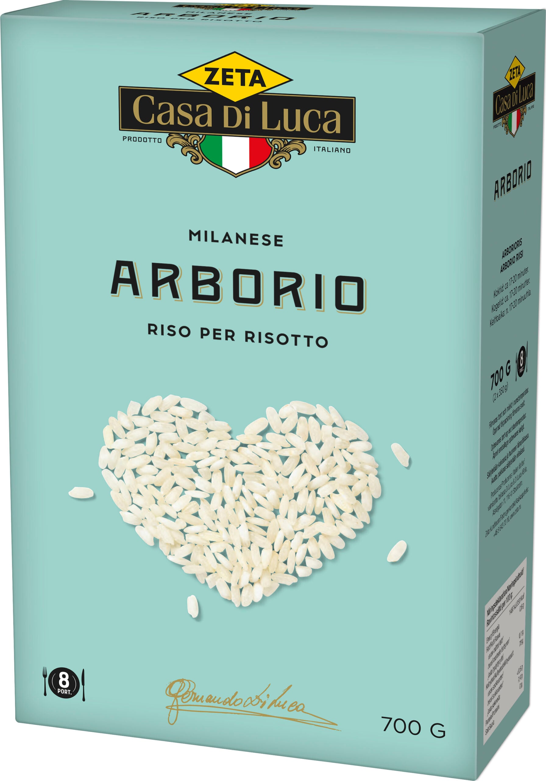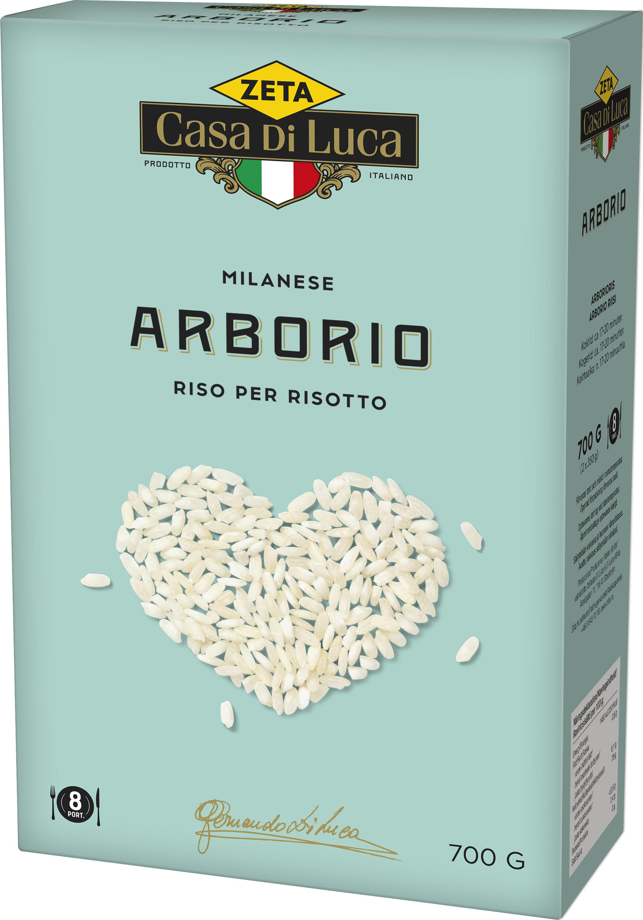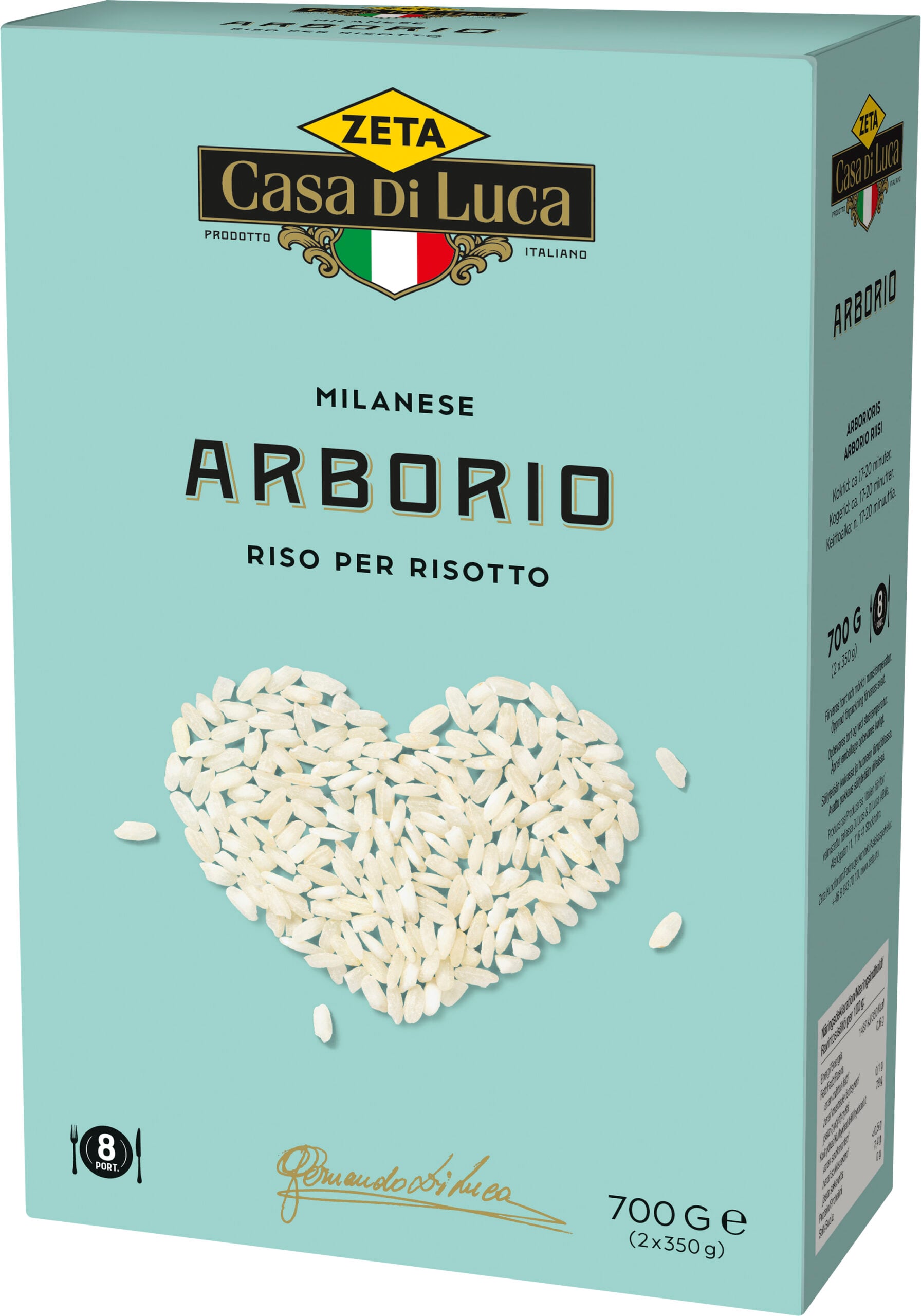 I Italien är detta ris klassificerat Super Selezionato – ”garanterat bästa sortering”. Riset skalas enligt klassisk metod med sten, vilket ger överlägsna kokegenskaper. Direkt efter skalning vakuumförpackas riset för maximal smak. Den här delikatessen är nämligen en färskvara. Arboriogrynet sväller vid tillagning. Det har utmärkta al dente-egenskaper och tillför en underbart krämig personlighet.