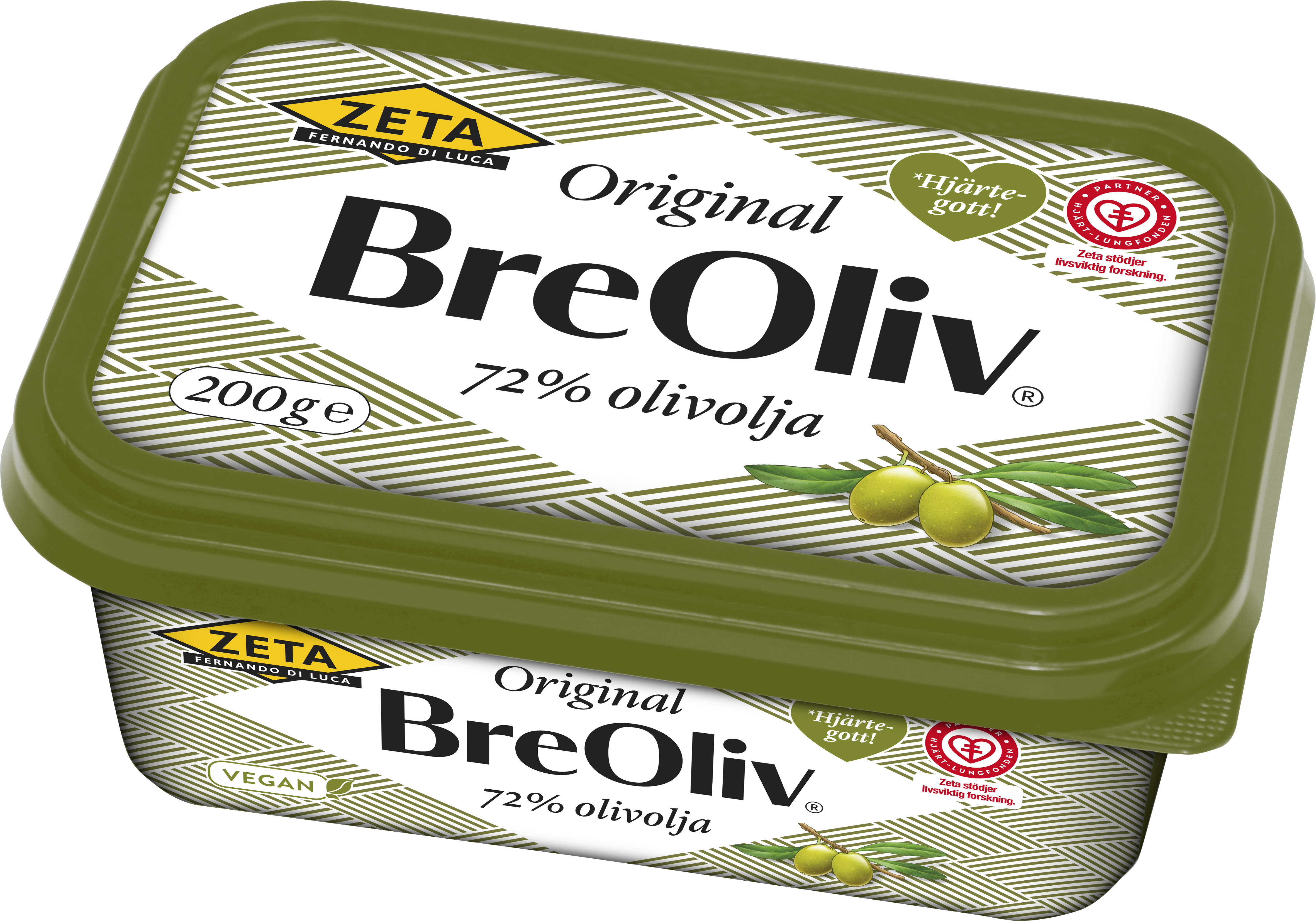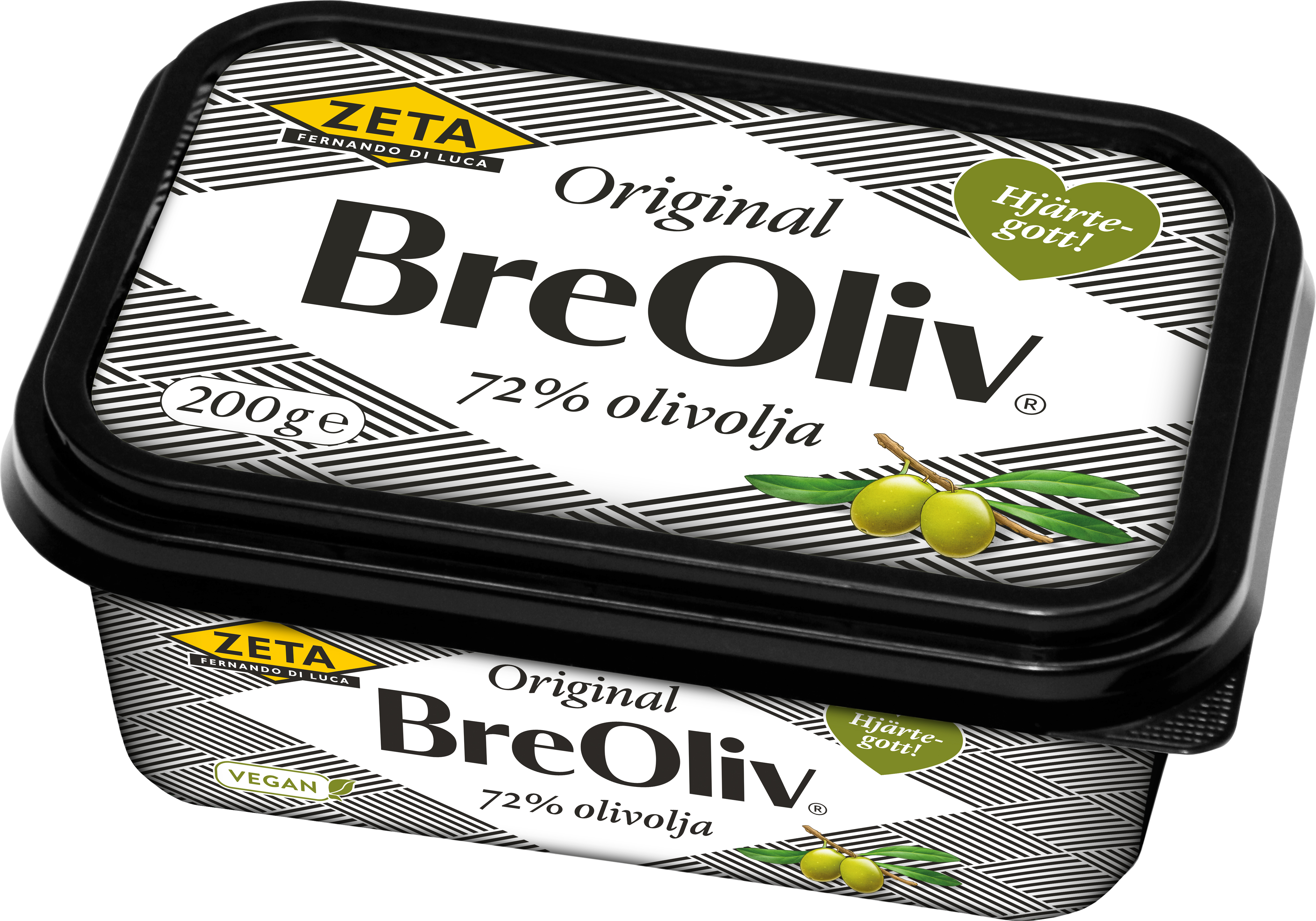 Zeta BreOliv är gjord av hela 72% extra jungfruolivolja och 18% fett från sheanötter. Det vegetabiliska sheanötsfettets fasta konsistens gör BreOliv bredbart. Resten är en nypa salt och vatten. BreOlivs goda egenskaper med olivoljans fina smak går nu att bre direkt på brödet. Passar även att steka i och baka med. Smaken har fräscha gröna toner från en mild olivolja.
