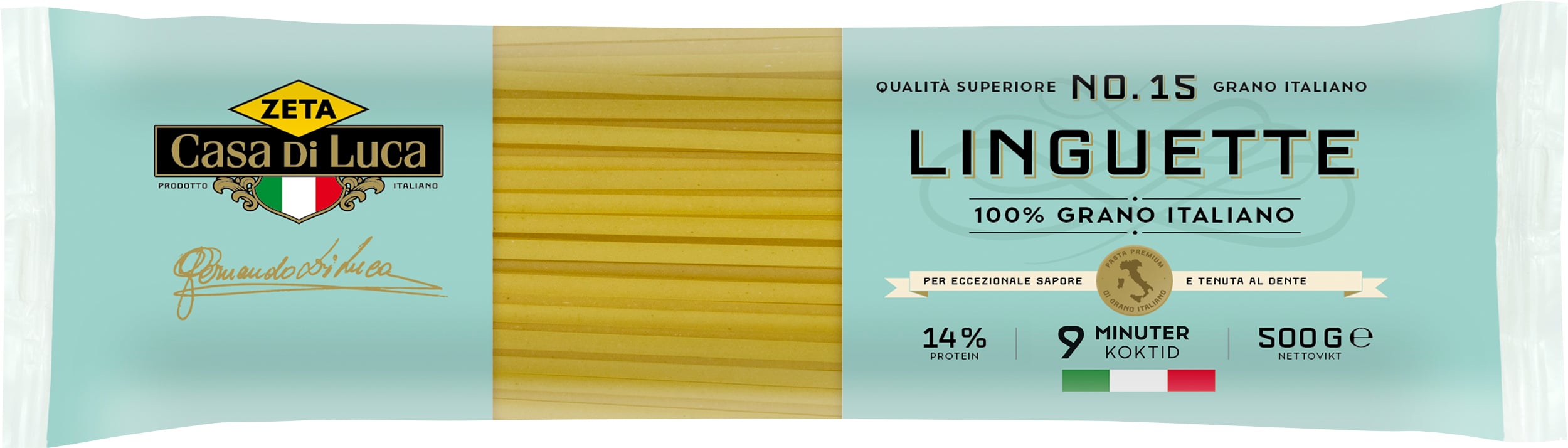 Linguette är en variant på pastaformen linguine, som betyder liten tunga och kan liknas vid en tillplattad spaghetti. Linguette är tillverkad av durumvetemjöl som är en källa till protein, halten är 14 procent. Det ger en fylligare smak och bra kokegenskaper på pastan, som behåller tuggmotståndet och al-dentekänslan genom hela måltiden. Pastaformen kommer från regionen Ligurien som är känt för sin basilika och pesto, vilket är en perfekt sås till Linguette. Linguette äts även ofta med skaldjur.
