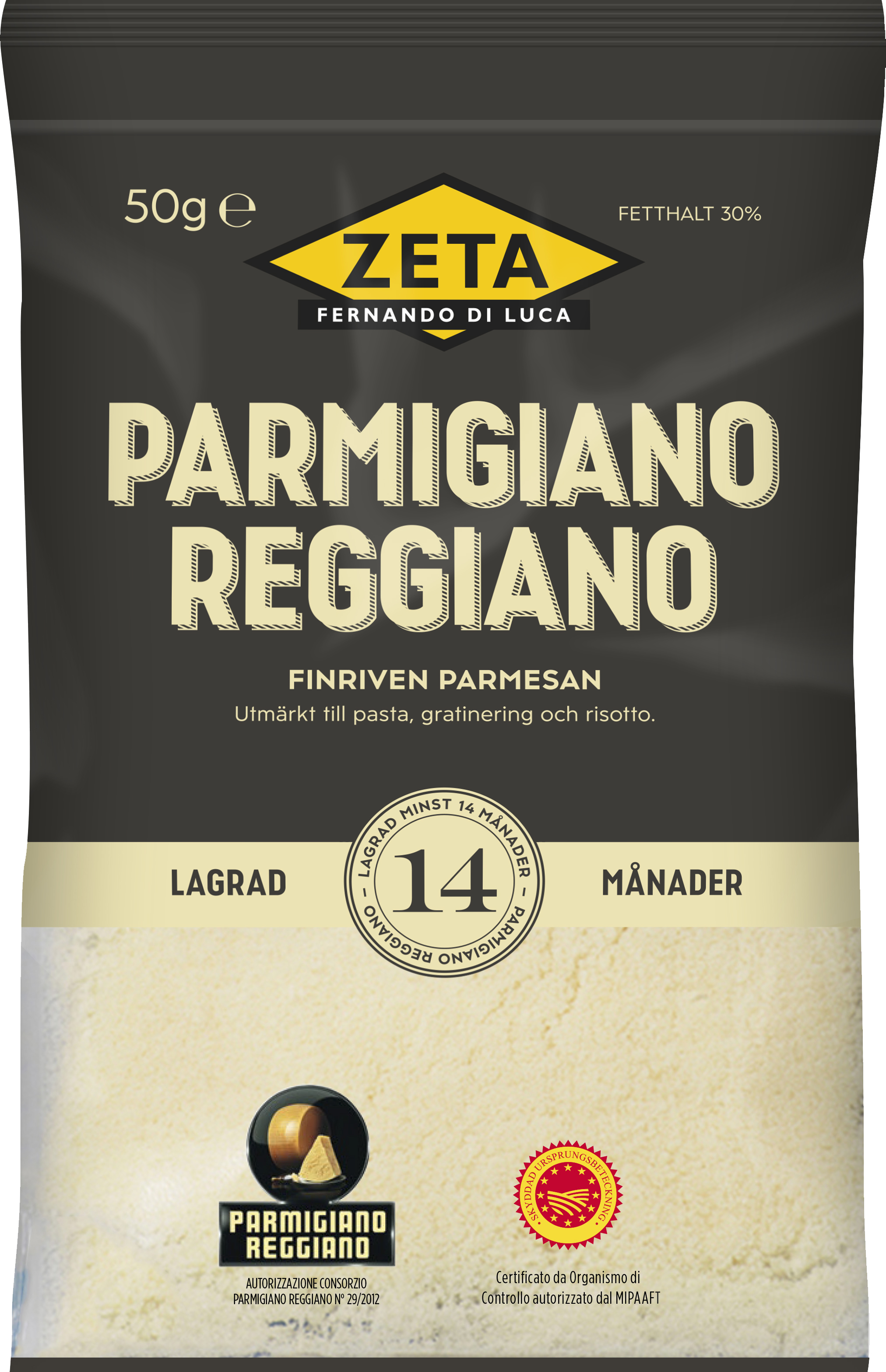 Zeta Parmigiano Reggiano Finriven är en ursprungsskyddad hårdost från norra Italien som smaksätter och lyfter de flesta maträtter. Rund och fyllig smak. Kort sagt har den en given plats på matbordet. Lagrad i 14 månader som anses vara kort tid när det kommer till Parmigiano Reggiano. Det innebär att osten är relativt mjuk med fina smältegenskaper. Passar till gratinering av allt från grönsaker, lasagne och pastagratänger. Mångsidig som umamirik smaksättare, gärna i en soppa eller sås.
