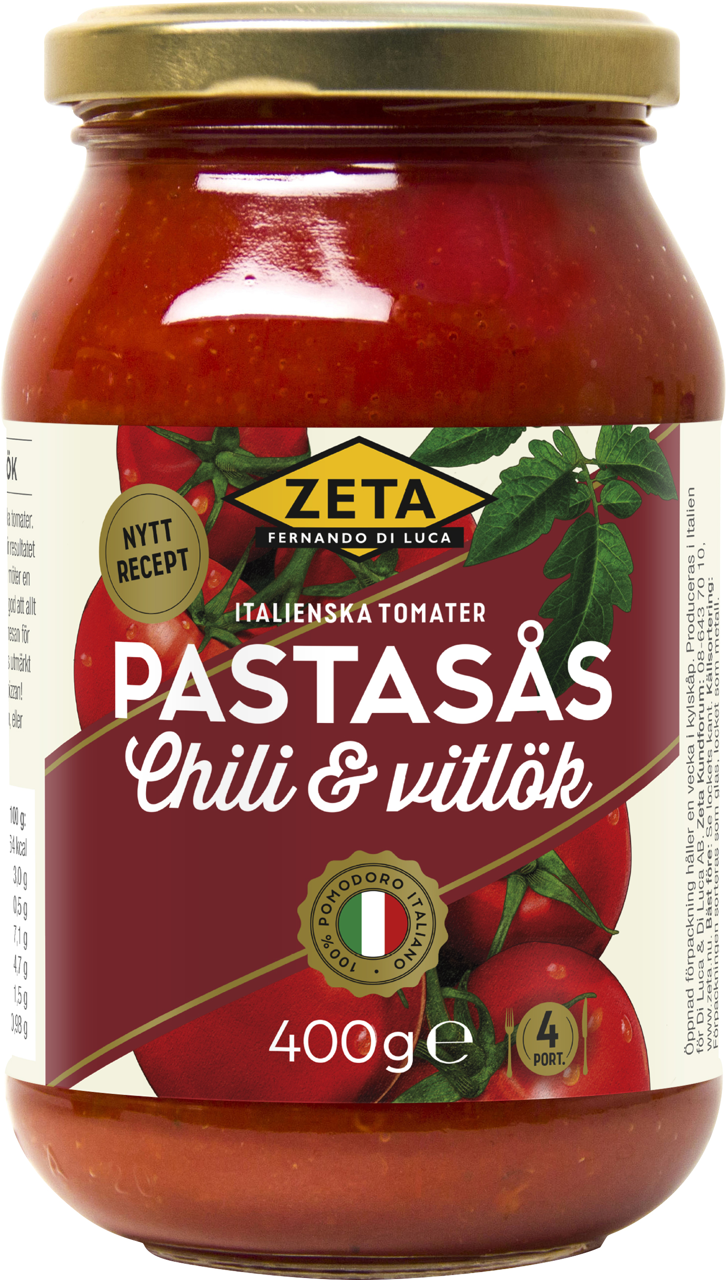 Det här är en pastasås lagad på solmogna italienska tomater. Eftersom den är gjord på särskilt utvalda tomater och kryddor, blir resultatet något extra: en rik, fyllig tomatsmak och chilihetta möter en välbalanserad blandning av vitlök, oregano, vitpeppar samt en nypa socker och salt. Så god att allt som behövs till är pasta, gärna med lite riven parmesan för att lyfta smaken ännu ett snäpp. Dessutom alldeles utmärkt som bas till såser eller grytor – och så klart på pizzan!