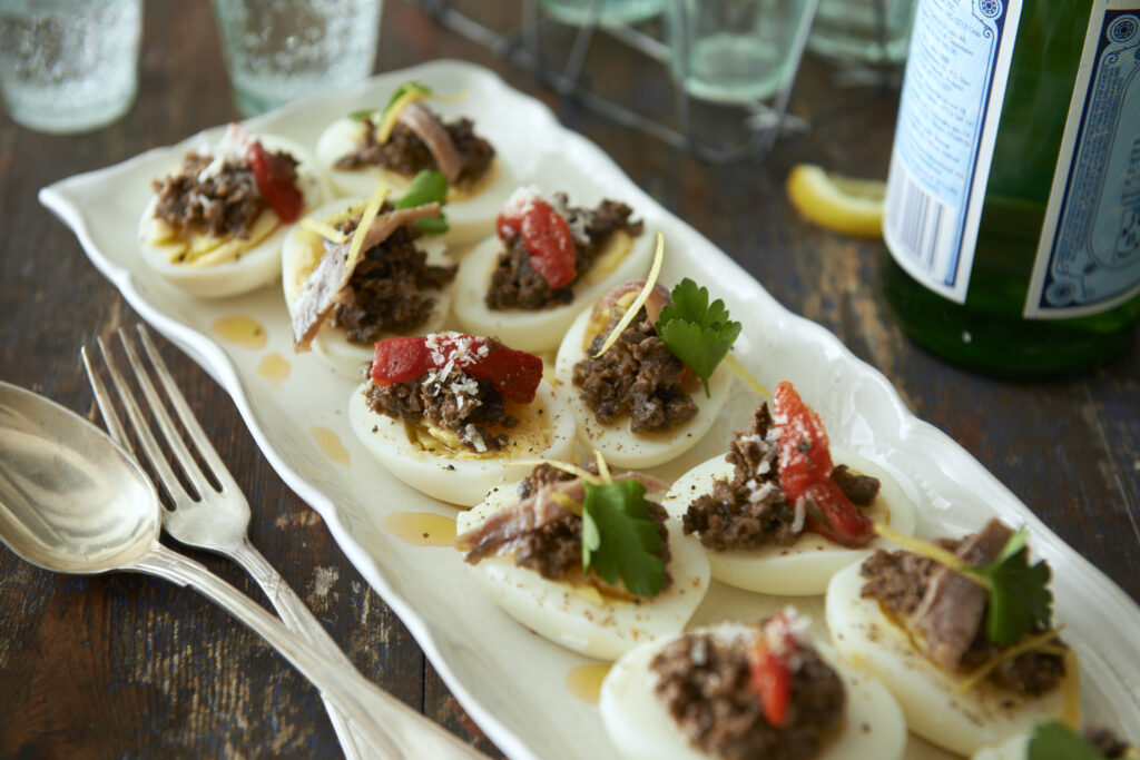 Ägg med olika toppings som passar perfekt på påskbuffén.