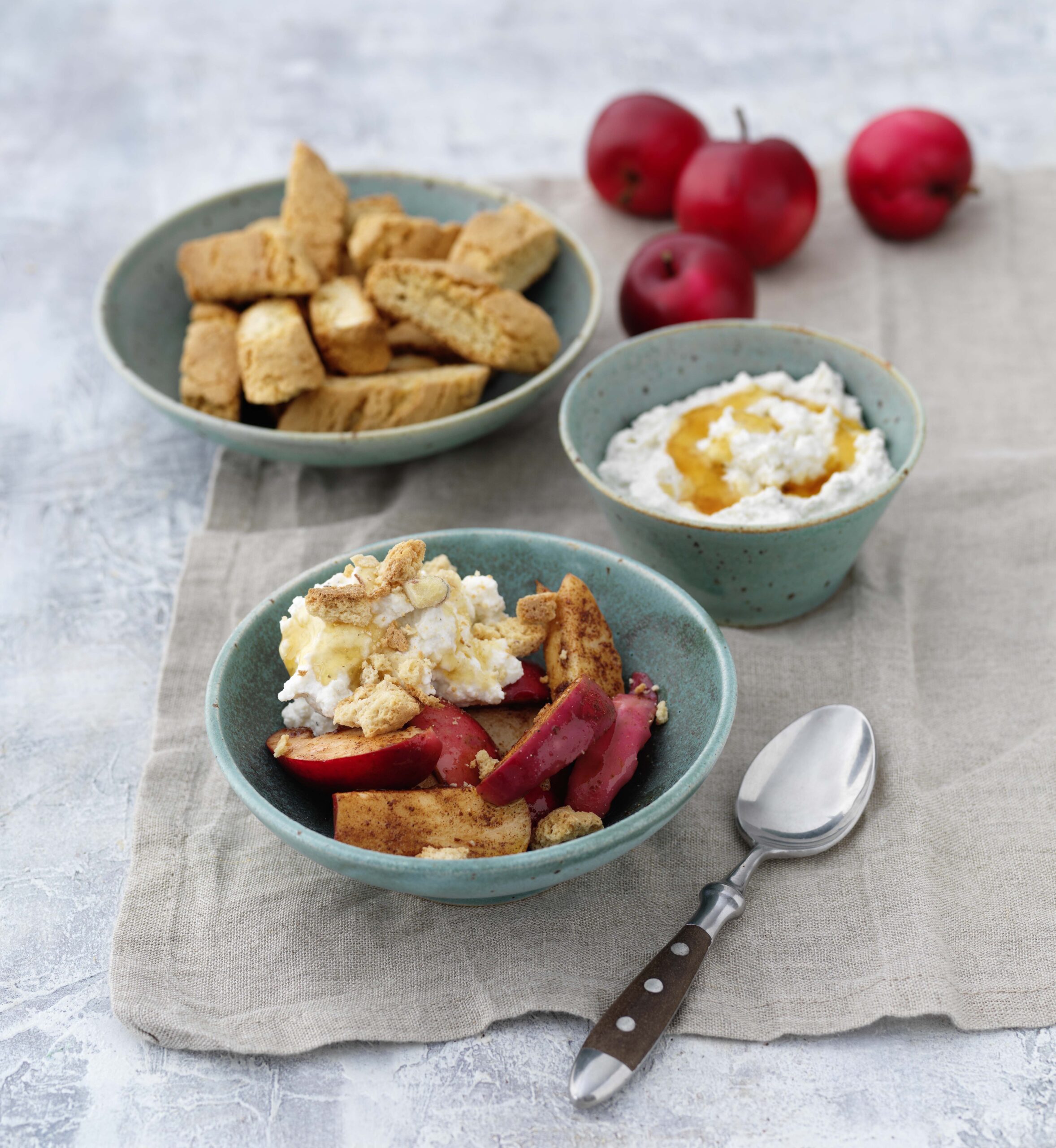Äppelklyftor med kanel och krämig vaniljricotta