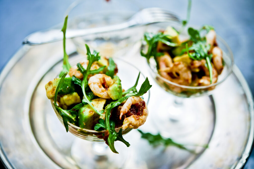 Avokado och räkor med tomatvinägrett