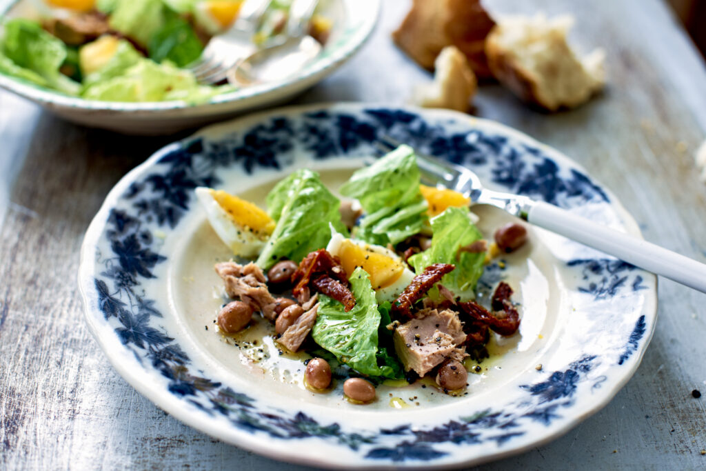 Med bönor och tonfisk blir salladen matig och mättande. Gott att servera ägg till.