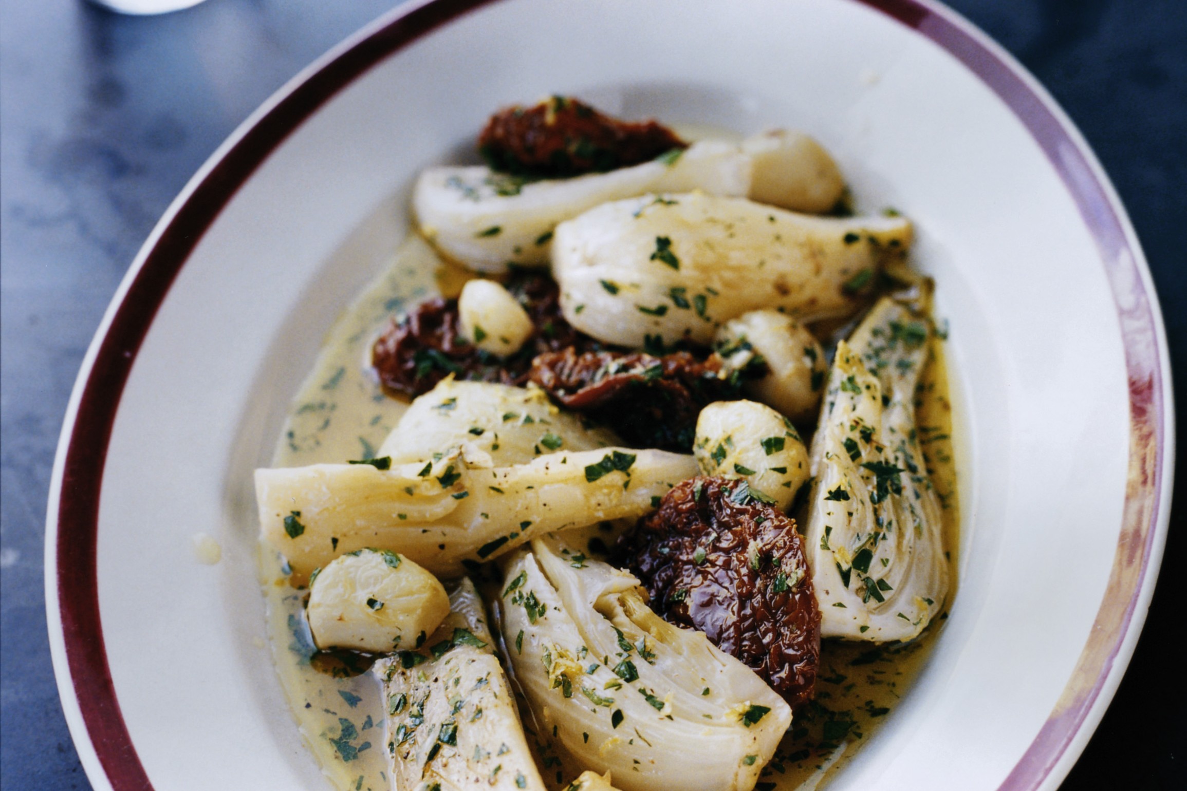 Bräserad fänkål med soltorkade tomater