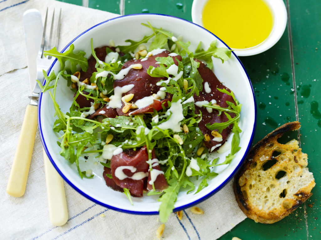 Bresaolasallad med krämig dressing