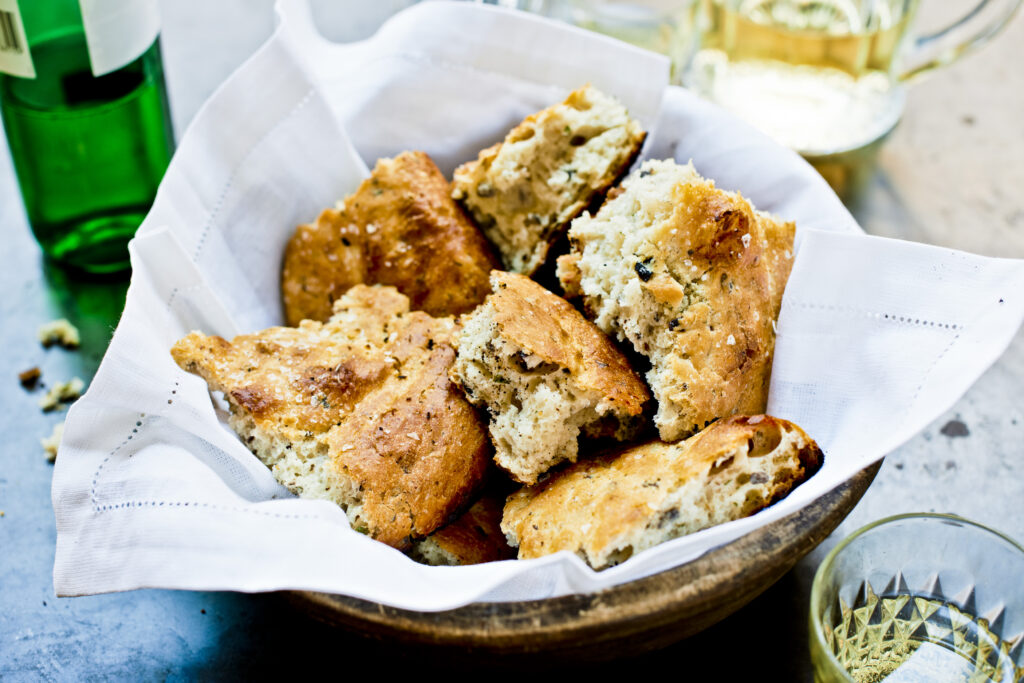 Ett buffébröd med smaksatt med tapenade. Perfekt brytbröd på buffébordet.