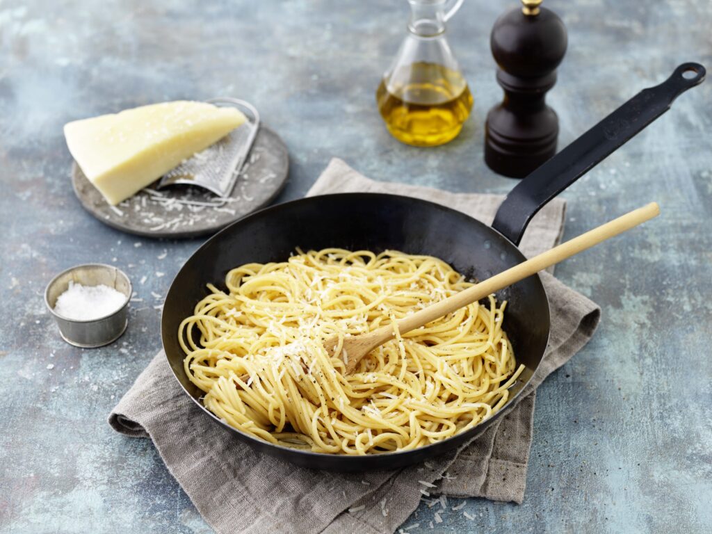 Cacio e pepe är en klassisk italiensk vardagspasta som blir härligt krämig om den tillagas med varsamhet. Tänk på att värmen inte får vara för hög- då klumpar sig osten. Rätten kräver en hel del övning innan den blir perfekt, men det är definitivt värt mödan. Du har all anledning att vara stolt när du lyckas få till önskad krämighet. Passar smakmässigt både vuxna och barn. Serveras med färskriven pecorino på toppen och nymalen svartpeppar.