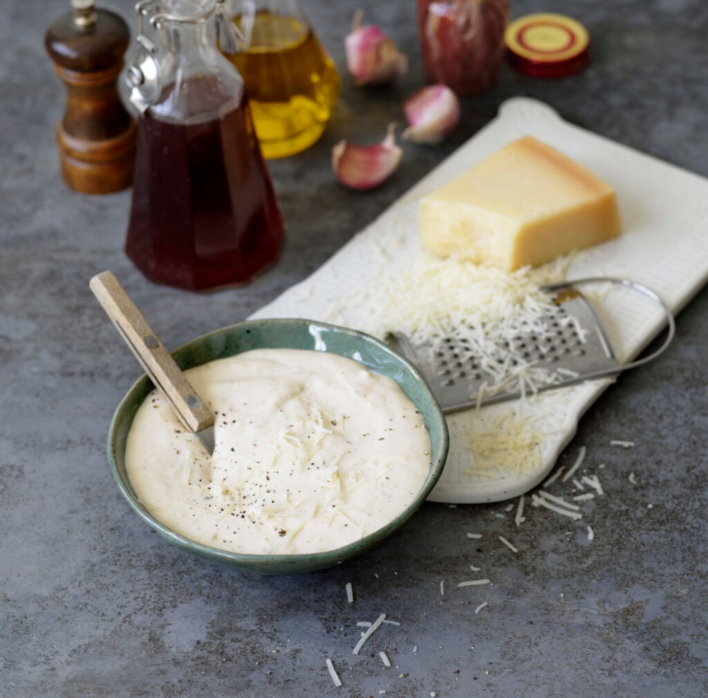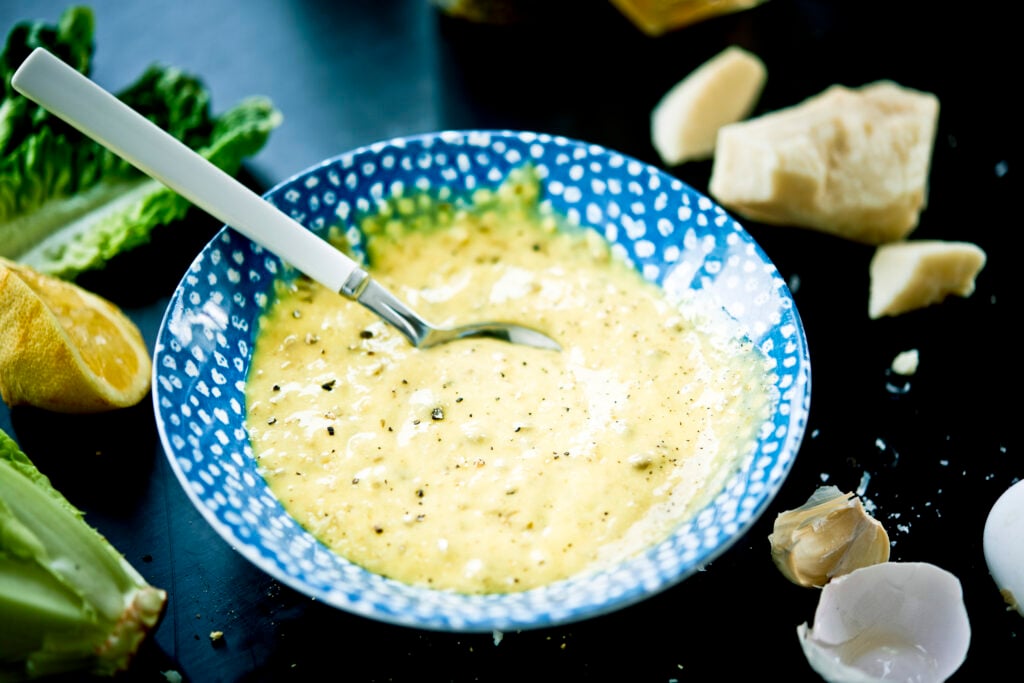 Caesardressing med sardeller och parmesan. Ett måste till den klassiska caesarsalladen, passar även till andra sallader, grillad kyckling eller fisk.