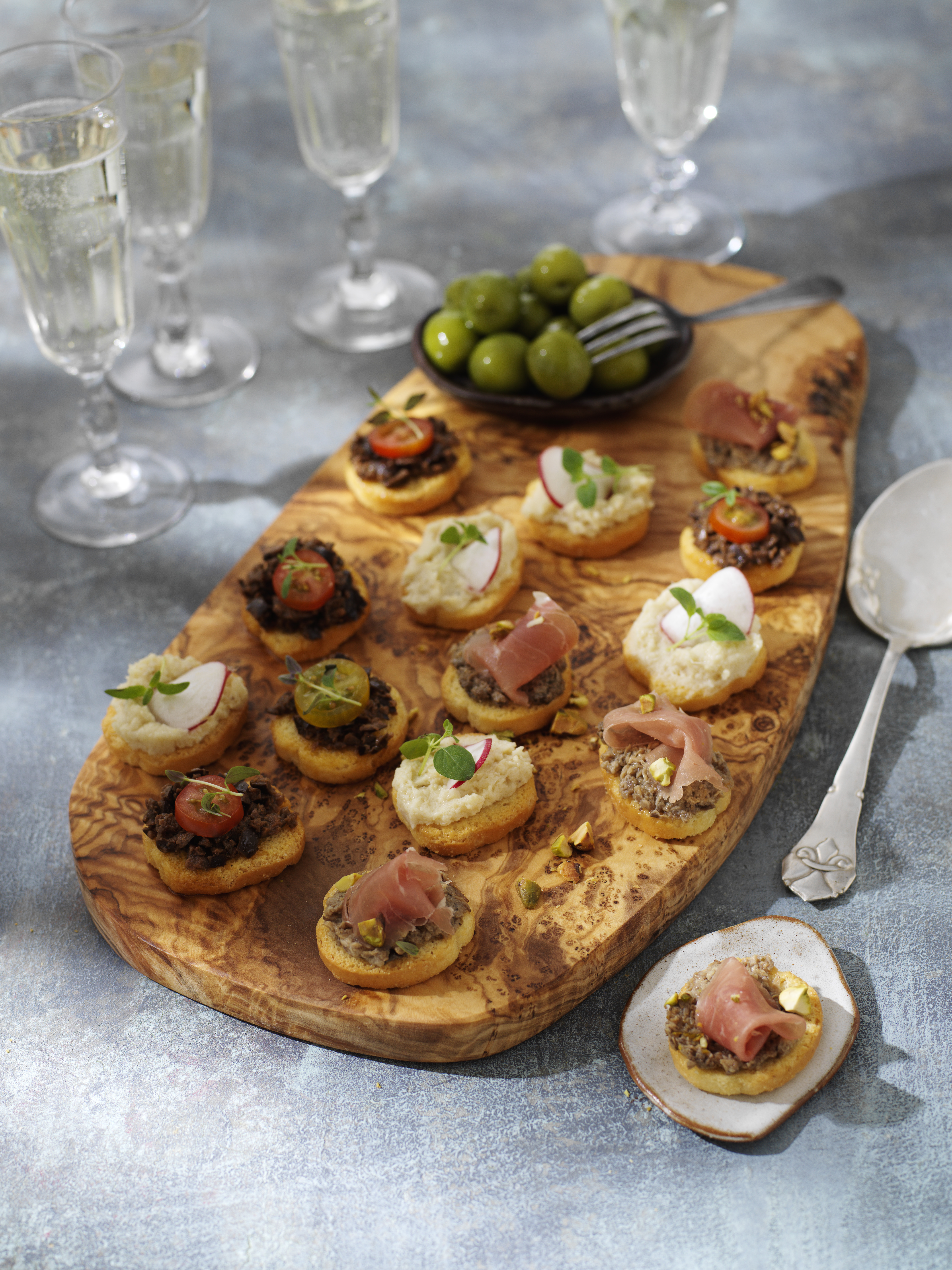 Världens godaste, enklaste och snabbaste aptitretare och drinktilltugg! När tiden är knapp men feststämningen är på topp och bubbelflaskan redan är uppkorkad då passar dessa snittar som bäst. Öppna burken, bred på crèmen, dekorera, skåla och mumsa på dessa små läckerheter.