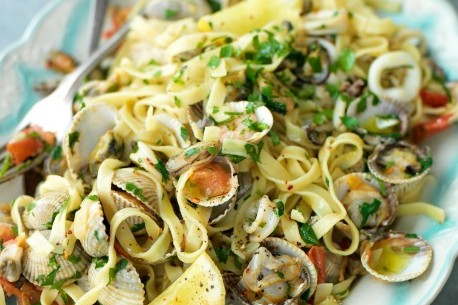 En härlig skaldjurspasta med persilja, chili och vitt vin.