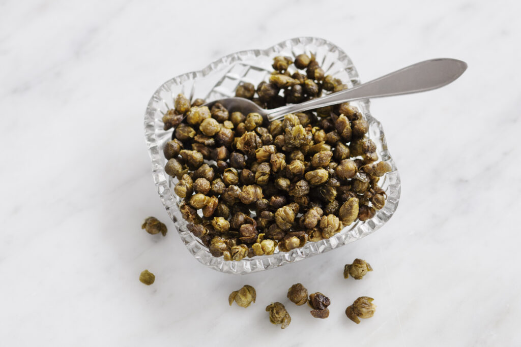 Små spröda friterade kapris som är goda att strö över en sallad eller använda som ett vegetariskt alternativ till pancetta.