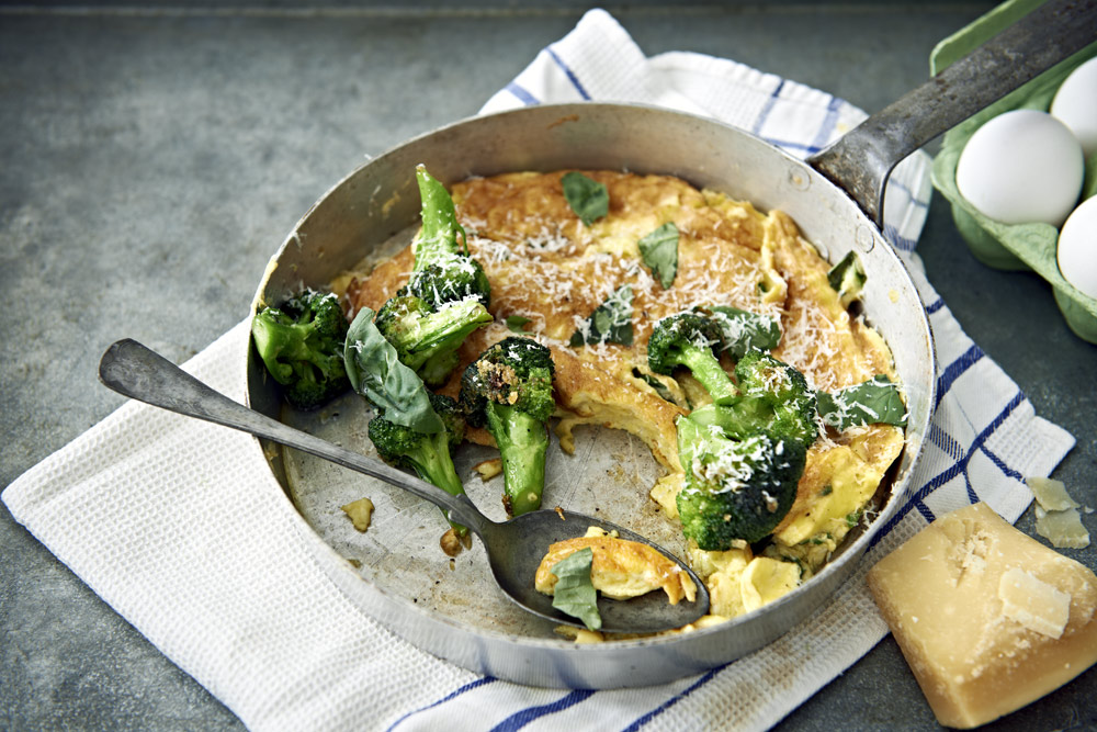 Bjud på en rustik frittata – Italiensk omelett med Grana Padano och vitlöksfräst broccoli.