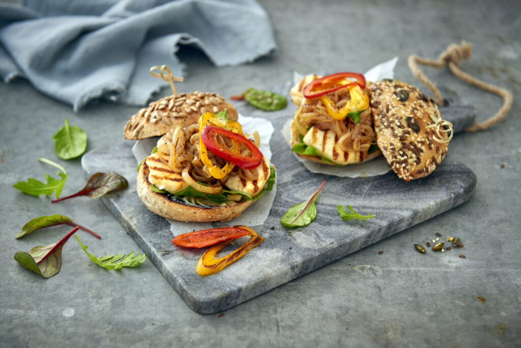 Fröfralla med BreOliv, nygrillad halloumi, karamelliserad lök med balsamvinäger. BreOliv är ett helt vegetabiliskt fett med bara fyra ingredienser, olivolja, fett från sheanötter, vatten och salt.