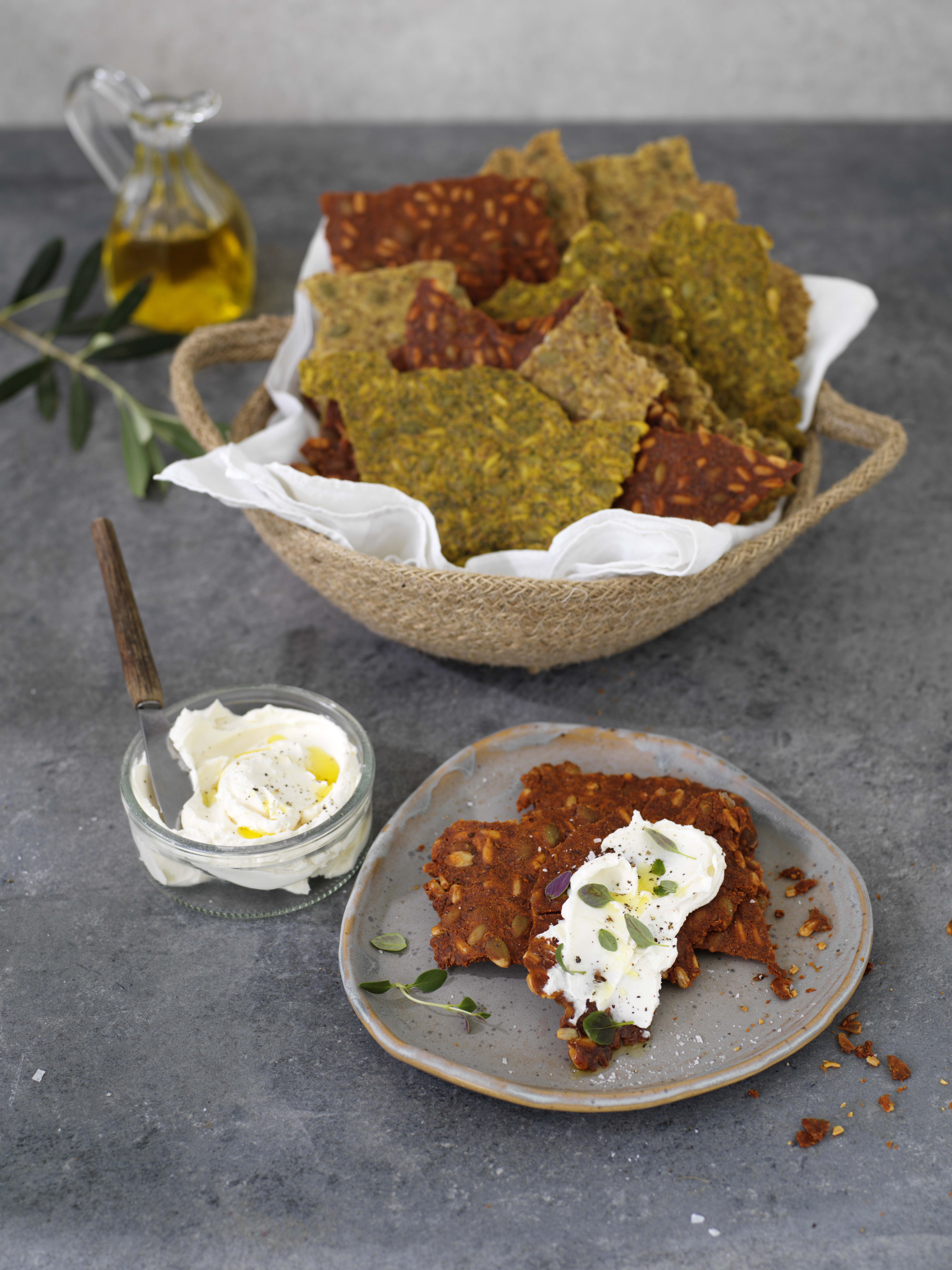 Fröknäcke är så gott och väldigt lätt att baka. Här smaksatt med både olja och kryddor. De krispiga bröden är goda att äta precis som de är men brödet med citron och dill passar perfekt till kräftskivan eller fiskrätten. Det med chili och vitlök är gott tillsammans med mild mascarpone toppat med lite örtkryddor och det örtiga brödet ätes gärna med lite BreOliv.