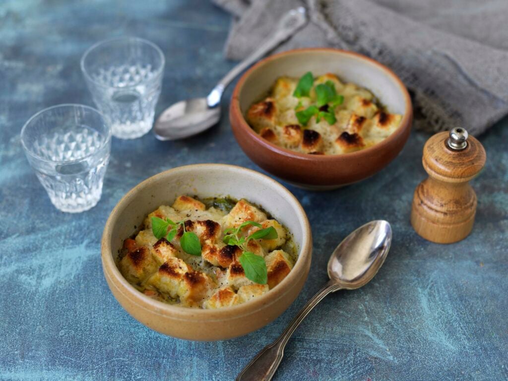 Mustig ostgratinerad grönsakssoppa med italienska smaker. Påminner om en klassisk löksoppa som kan serveras som både förrätt eller varmrätt.