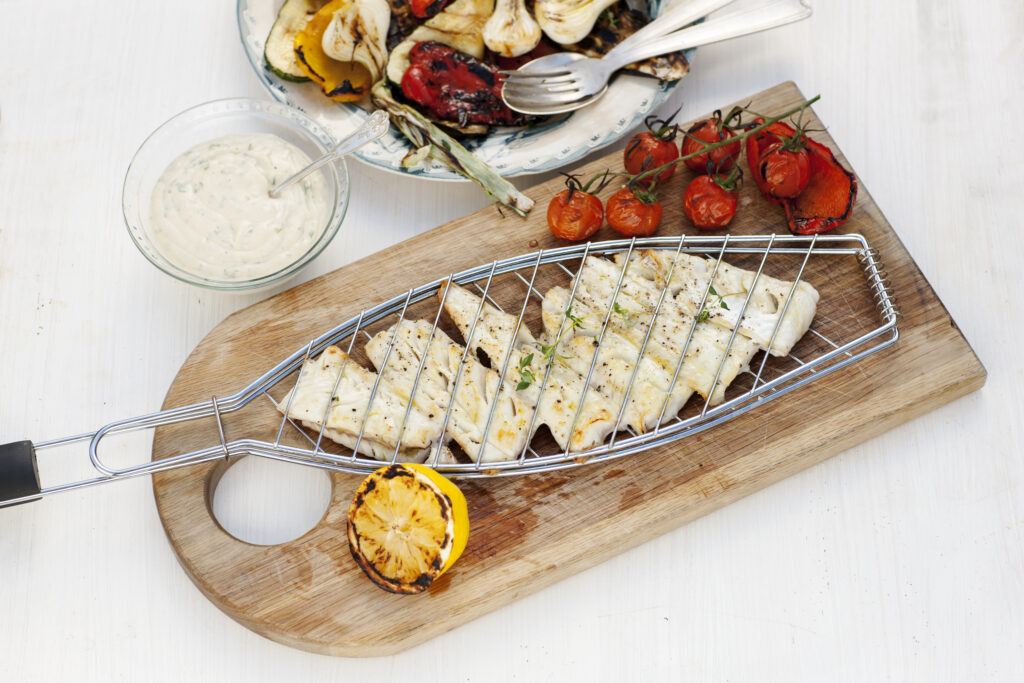 Grillad vit fisk med smakrik bearnaisesås gjord på bönor.