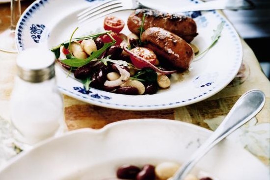 Salsiccia är en utmärkt korv att grilla. Med en kall bönsallad har du en riktigt god sommarrätt!