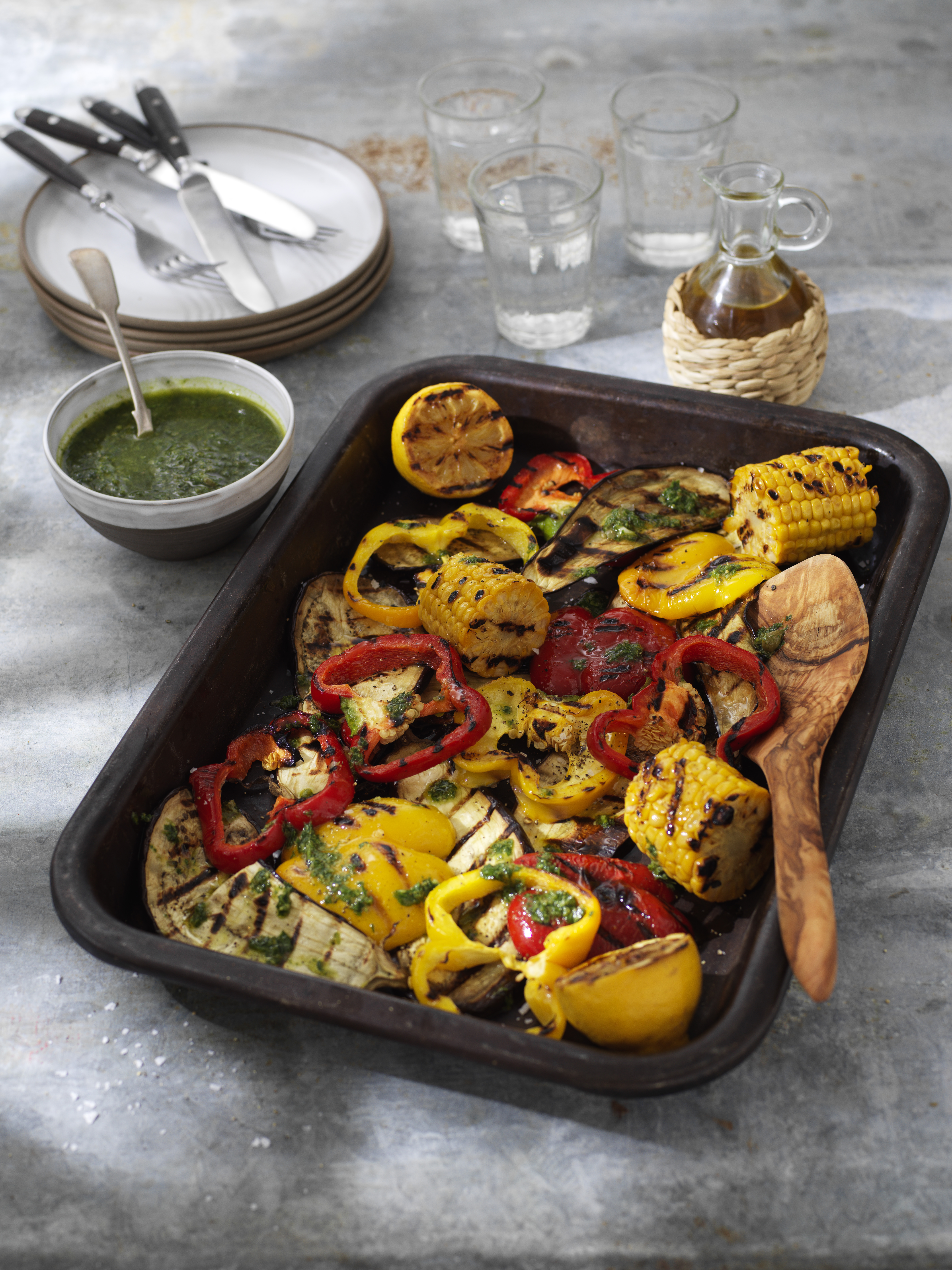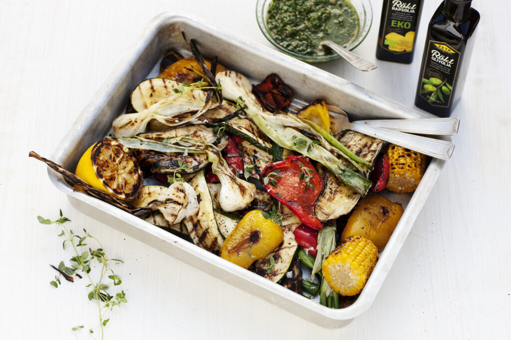 Grillade grönsaker får en fin smak av olivolja som kompletteras perfekt med en smakrik och fräsch salsa verde. Kombinationen av grillad smak och örtig salsa karaktär ger en läcker smakupplevelse.
