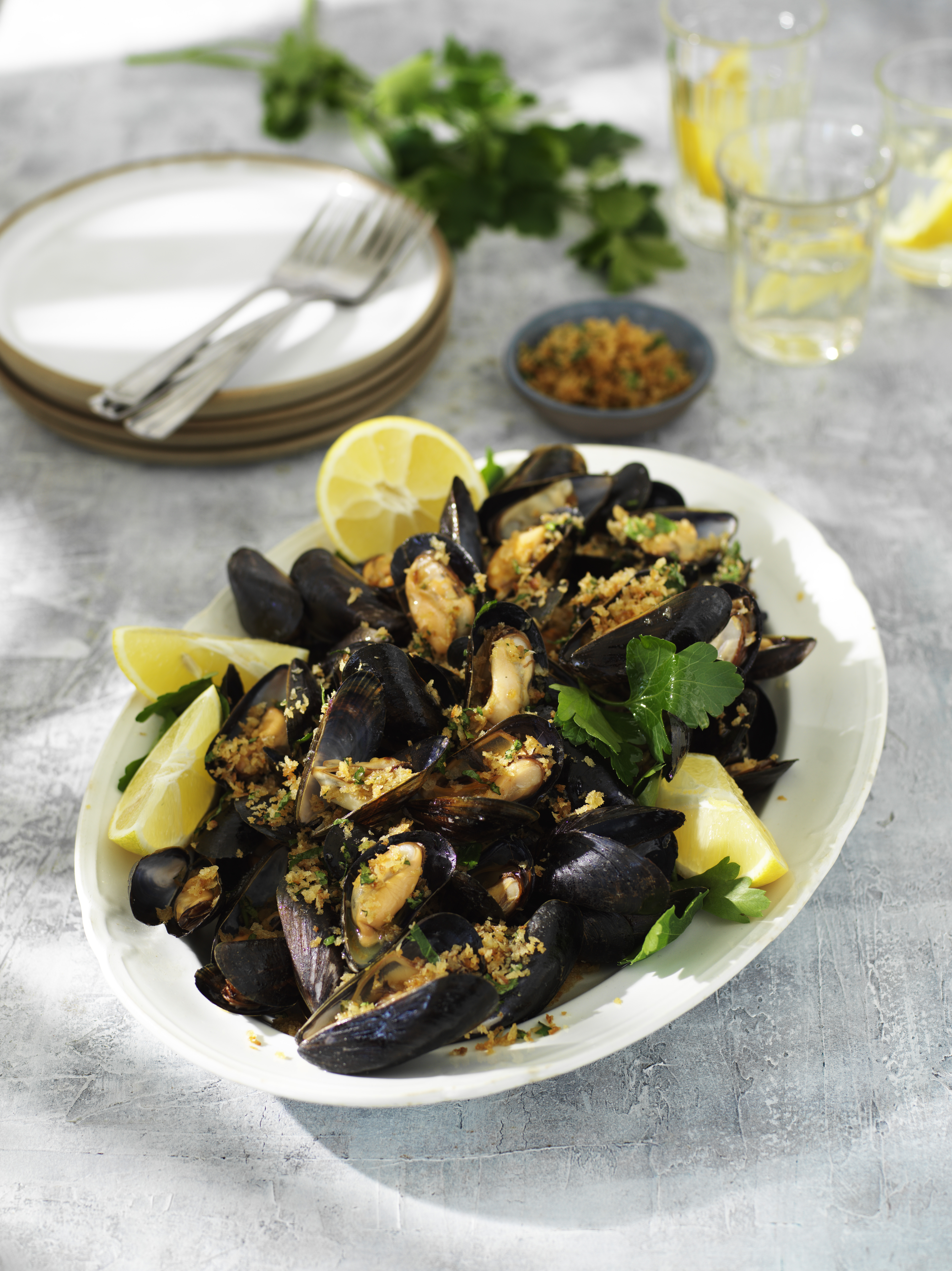 Musslor på grillen är så gott och känns riktigt somrigt. När de dessutom serveras med ett smakrikt och umamikryddat brödkrisp är sommarens favorit på grillen given. Servera gärna med lätt grillade skivor av surdegsbröd och en smakrik olivolja att doppa brödet i.