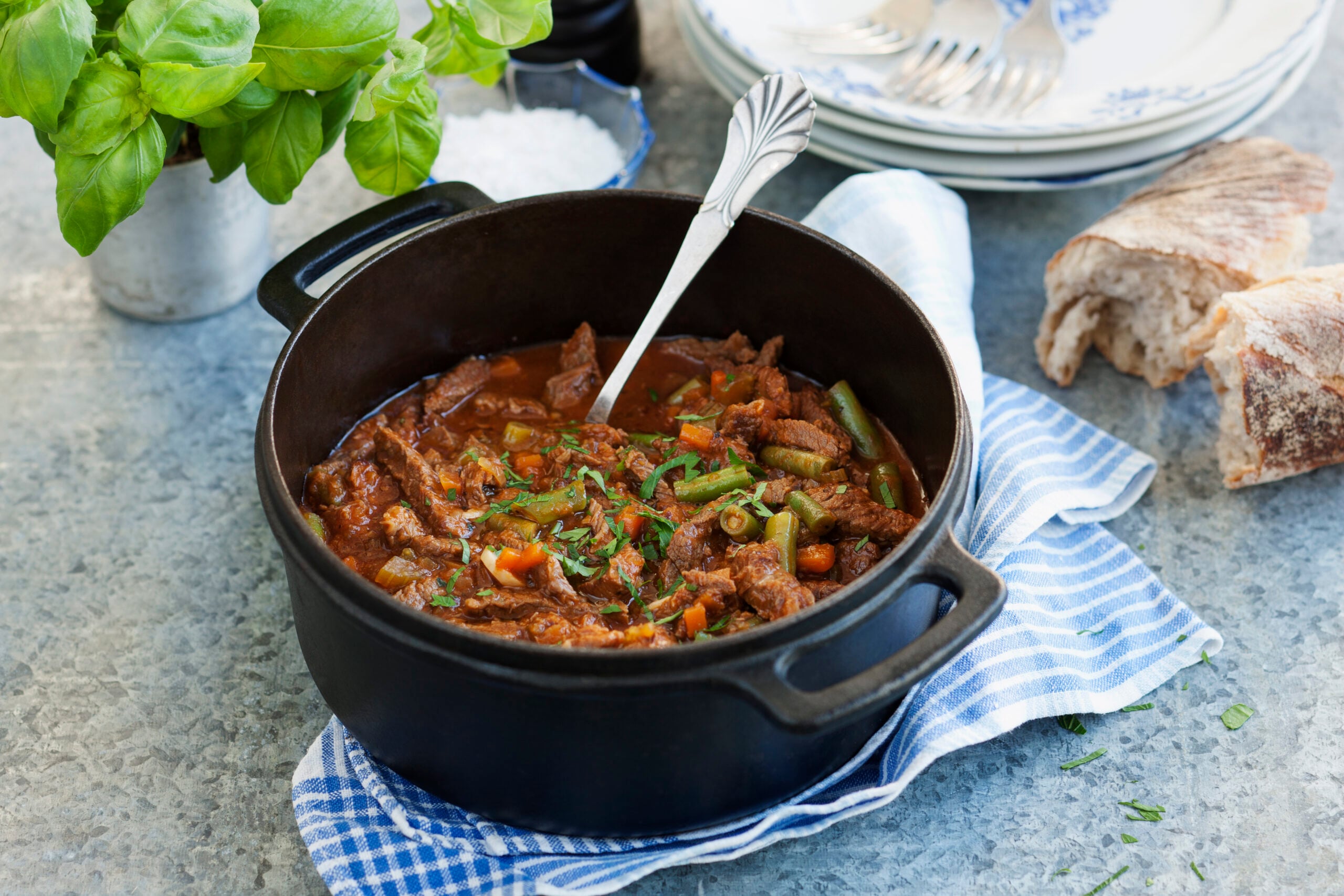Italiensk kalvgryta Spezzatino från norditalien, sköter sig själv på spisen och perfekt att laga när en har många gäster.