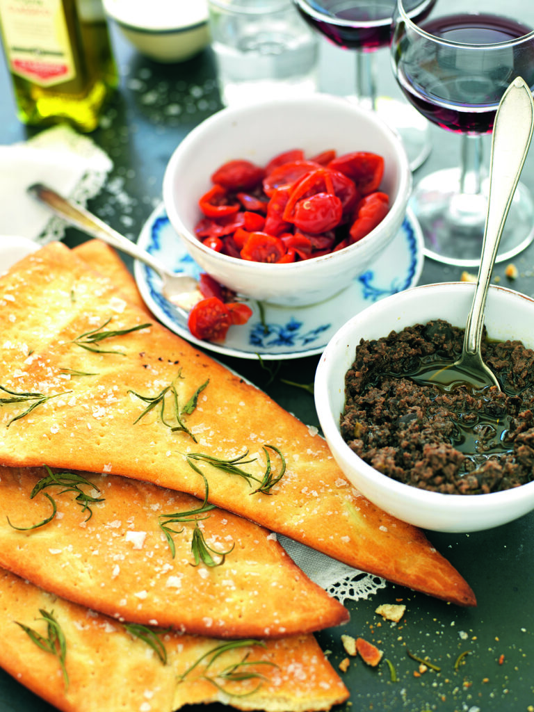Knaprigt och gott italienskt bröd med härlig doft av rosmarin. Servera med inlagda grönsaker, röror och salami.
