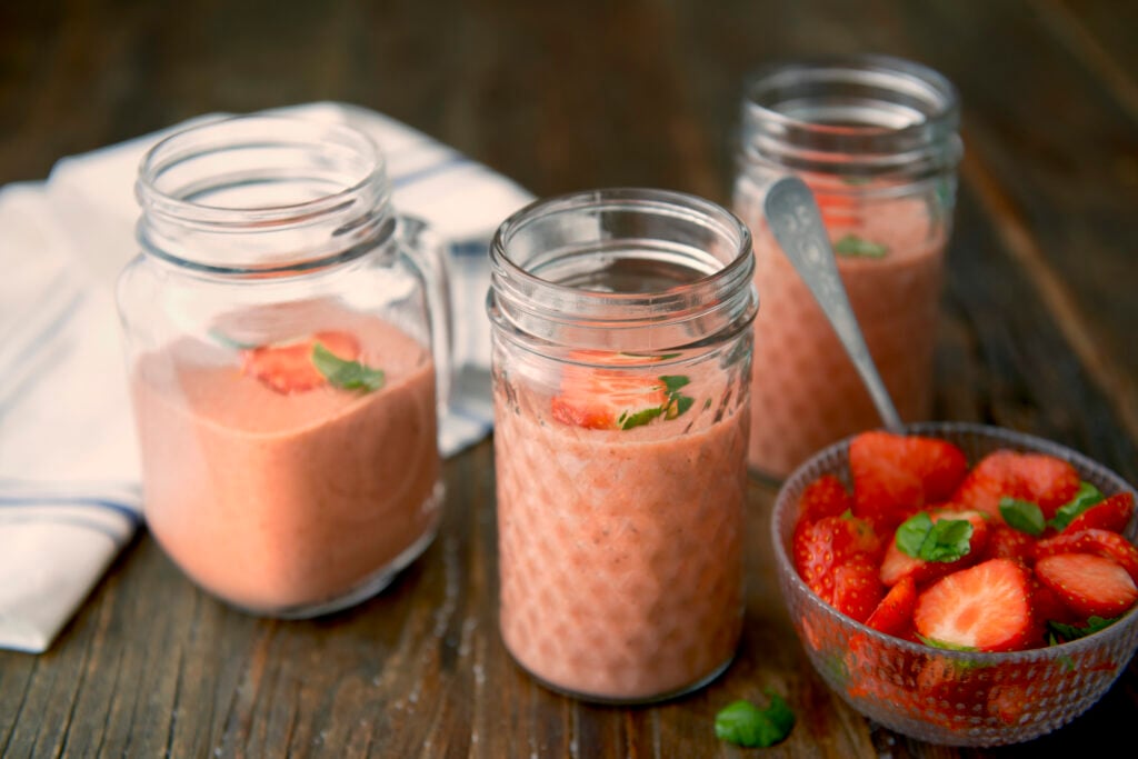 Smoothie alle fragole. En mättande och fräsch smoothie som passar utmärkt till frukost eller mellanmål.