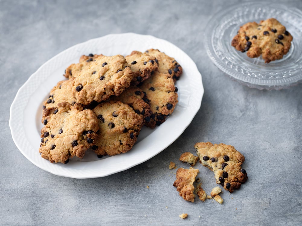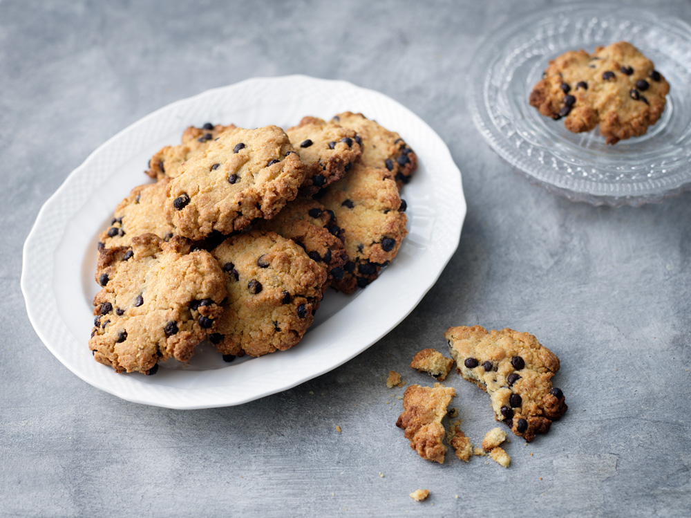 Kakor bakade på olivolja med chokladbitar i serveras gärna till kaffet. Olivoljan gör att kakorna blir krispiga med viss seghet, precis som en kaka ska vara. Enkla att tillaga och går att förbereda dagen innan genom att frysa in kakdegen för att sedan gräddas.