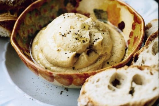 Kikärtsdipp med olivolja och vitlök är gott till nybakat bröd, till grönsaker och som röra på buffébordet.