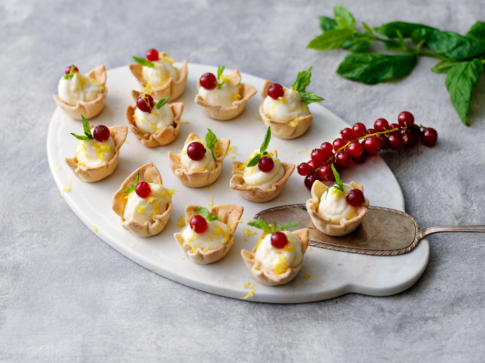 Ljuvliga små krustader med citronkräm och färska bär. Perfekt till buffébordet eller som en fräsch dessert på sommaren.