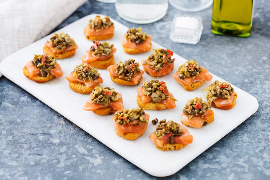Små härliga munsbitar med lax och tapenade. Perfekt att servera på en buffé eller som tilltugg till fördrinken.