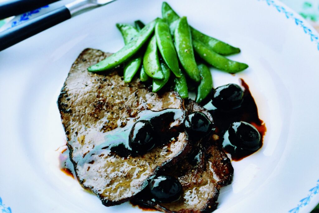Bjud dina gäster på lövbiff med oliver och färska ärtor i vinägersås. Härliga smaker med en touch av Italien