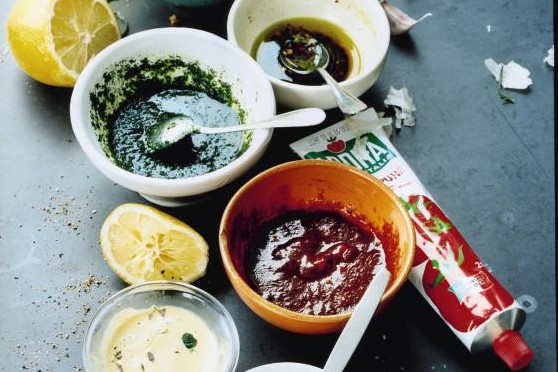 Marinad med tomat, vitlök och chili passar till att marinera både kött och kyckling.