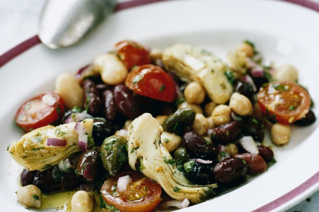 Bönor, kronärtskocka, oliver och kapris som marineras i olivolja, citron och färska persilja. Perfekt som tillbehör eller på buffébordet.