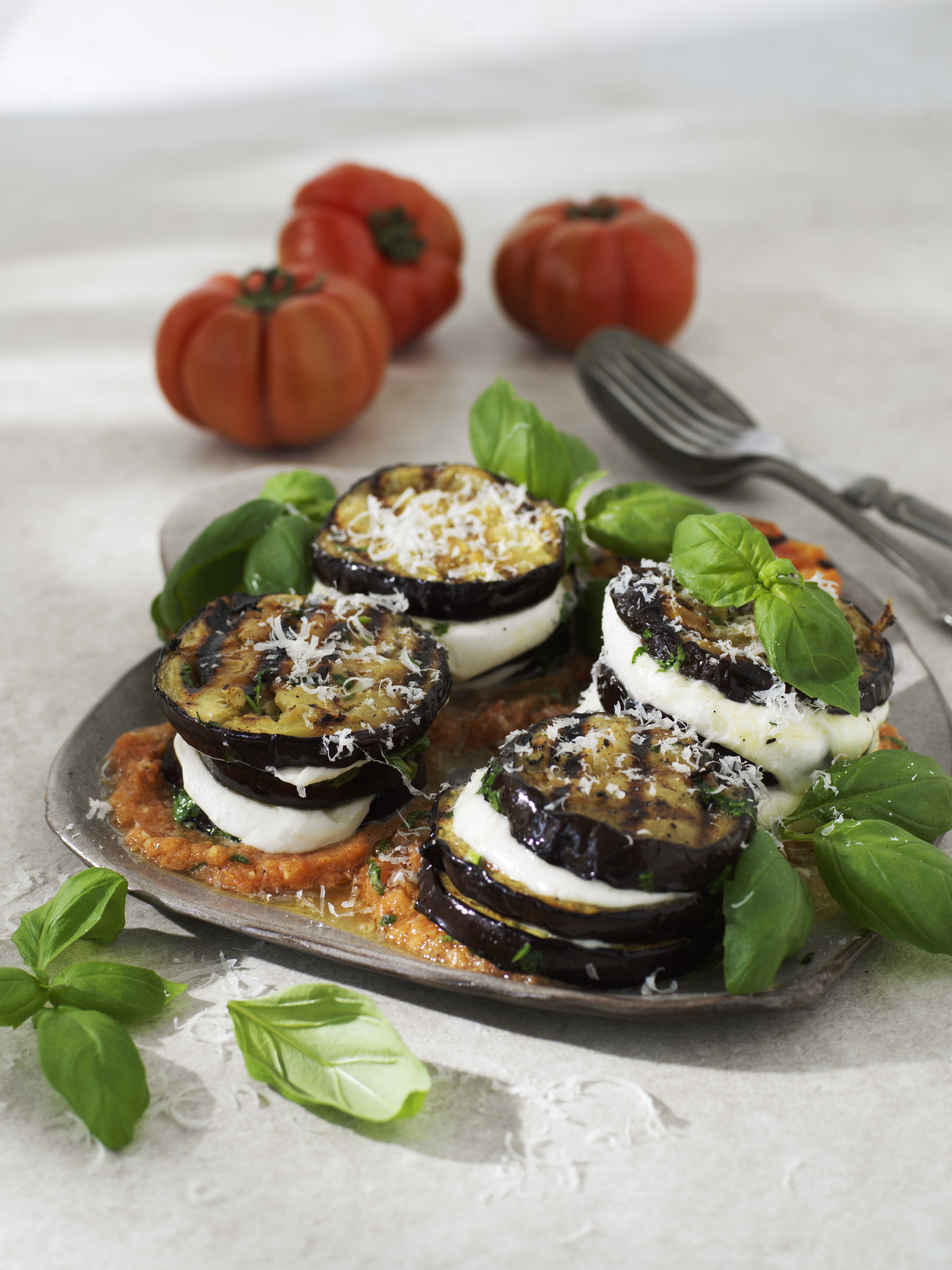 Rostad aubergine i kombination med mustig tomatsås och krämig mozzarella är en oslagbar kombination. Lägger du dessutom till smaken av grillat så är det här snart hela familjens favorit på grillen i sommar.