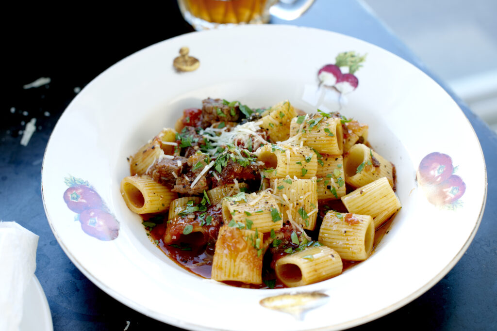 Pasta Mezze Maniche med bolognese av högrev
