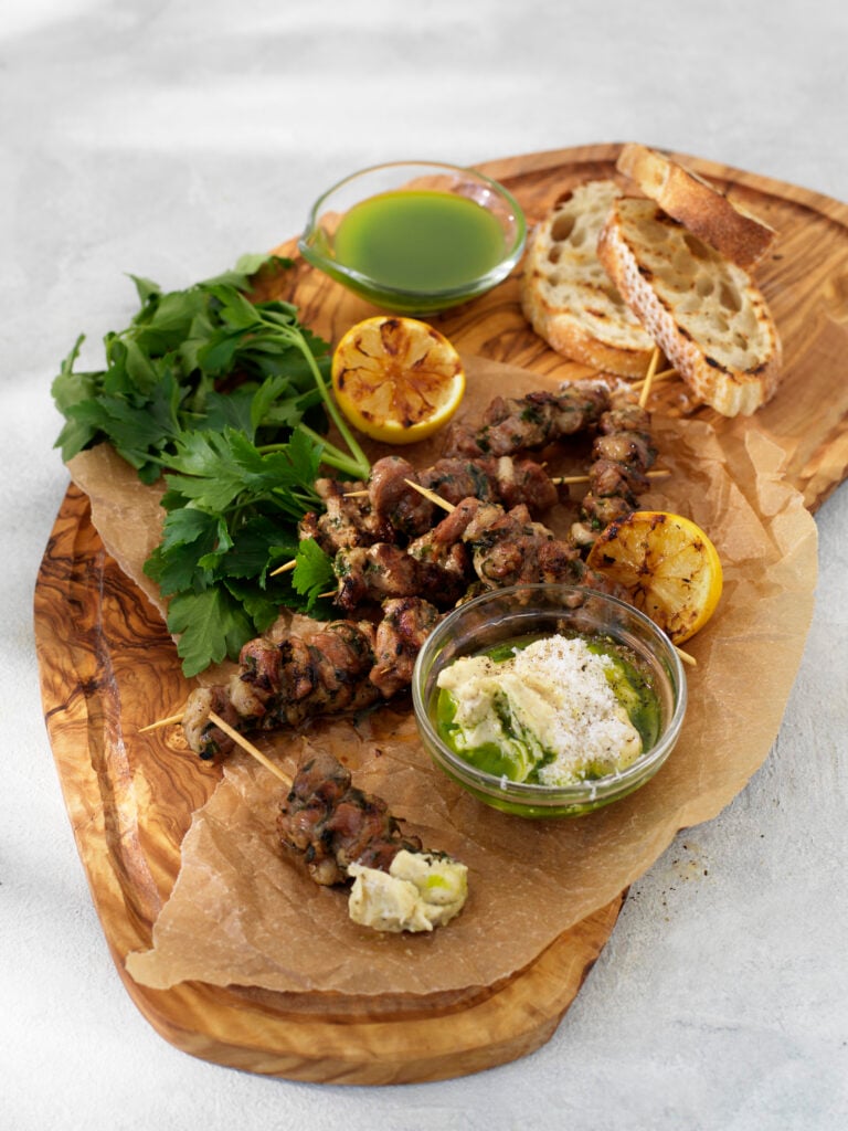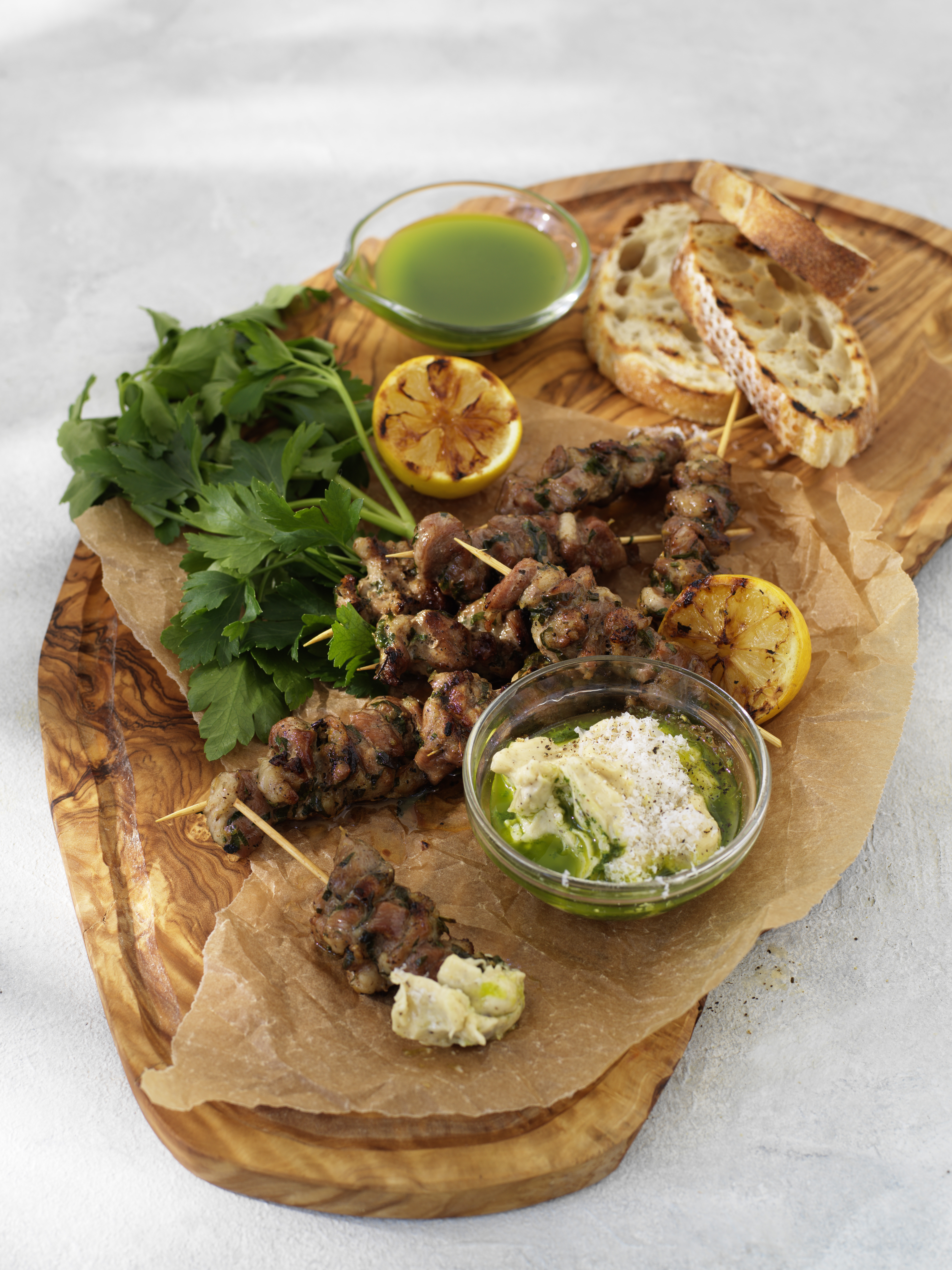 Minispett på fläskkarré med svartpepparmajonnäs och örtolja