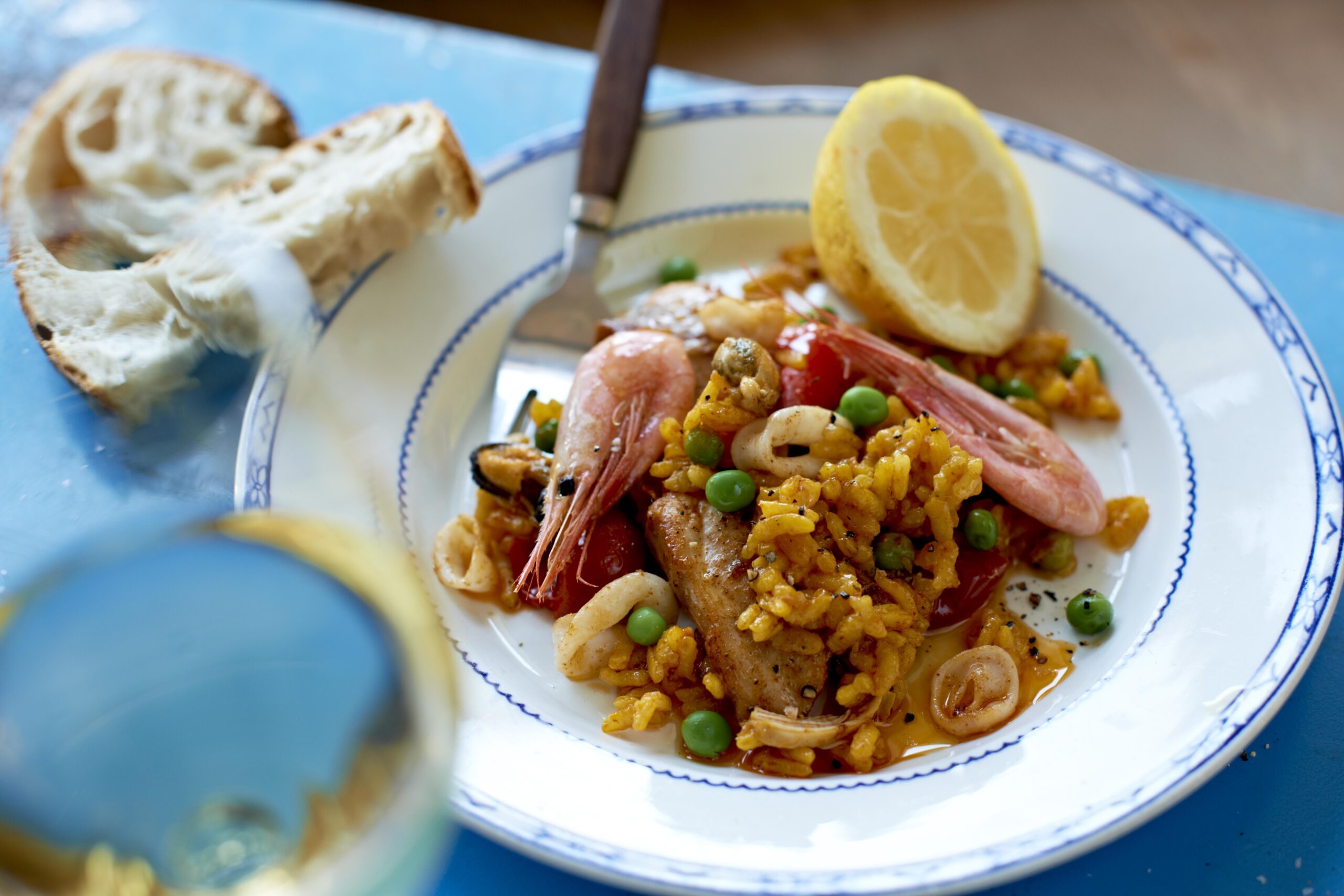 En krämig paella med klassiska smaker. Använd gärna ett rökigt paprikapulver för bästa smak.