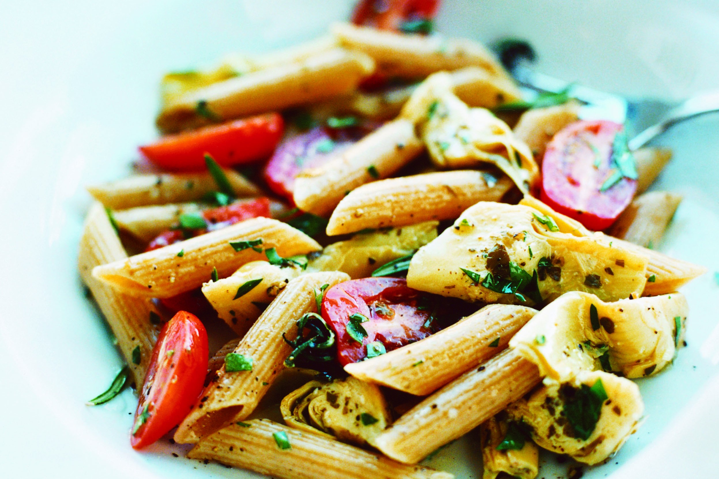Använd den pastaform du gillar bäst och spröda marinerade kronärtskockor.