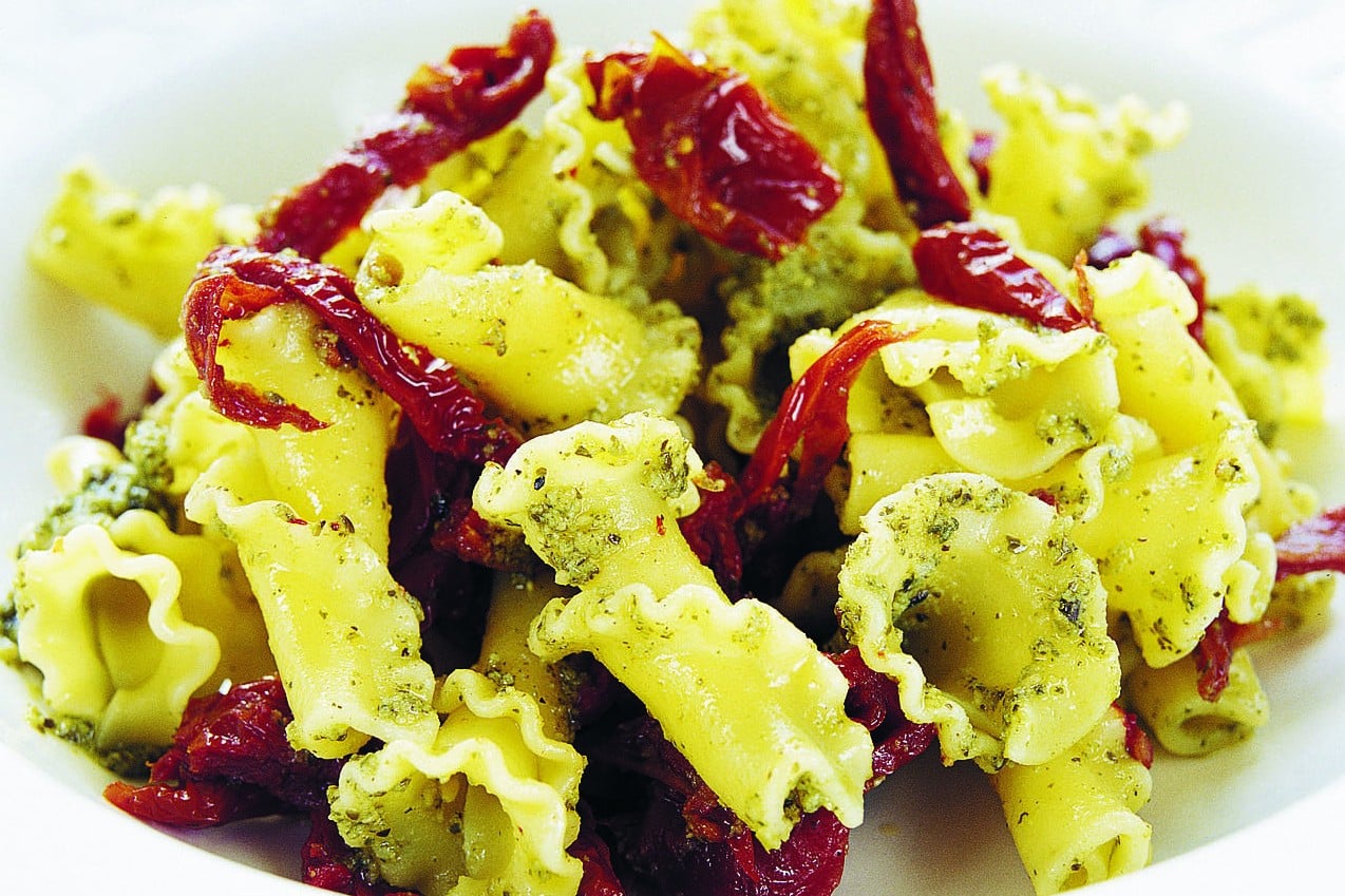 Pasta med pesto är en klassisk italiensk maträtt, denna variant med soltorkade tomater som ger extra tillskott av smak och fyllighet till rätten. Vardagsmat som är vänlig för plånboken och klar att servera på 15 minuter.