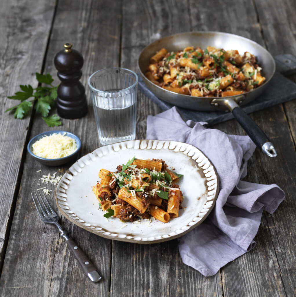 Pasta med nötfärs, tomat och olivolja provencal. Lättlagad och god vardagsrätt att byta ut den vanliga bolognesen med.