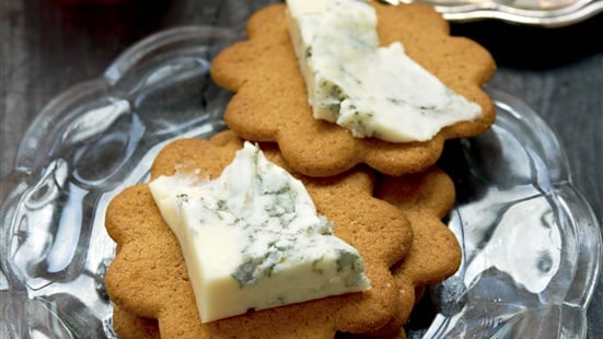 Pepparkaka med Gorgonzola Dolce är ett gott tilltugg på glöggbuffén.