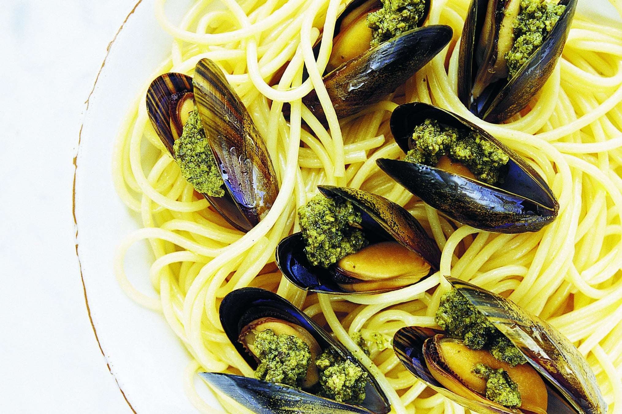 Musslor som gratinerats med pesto är precis så gott som det låter. Servera dem gärna på en rykande varm pasta.