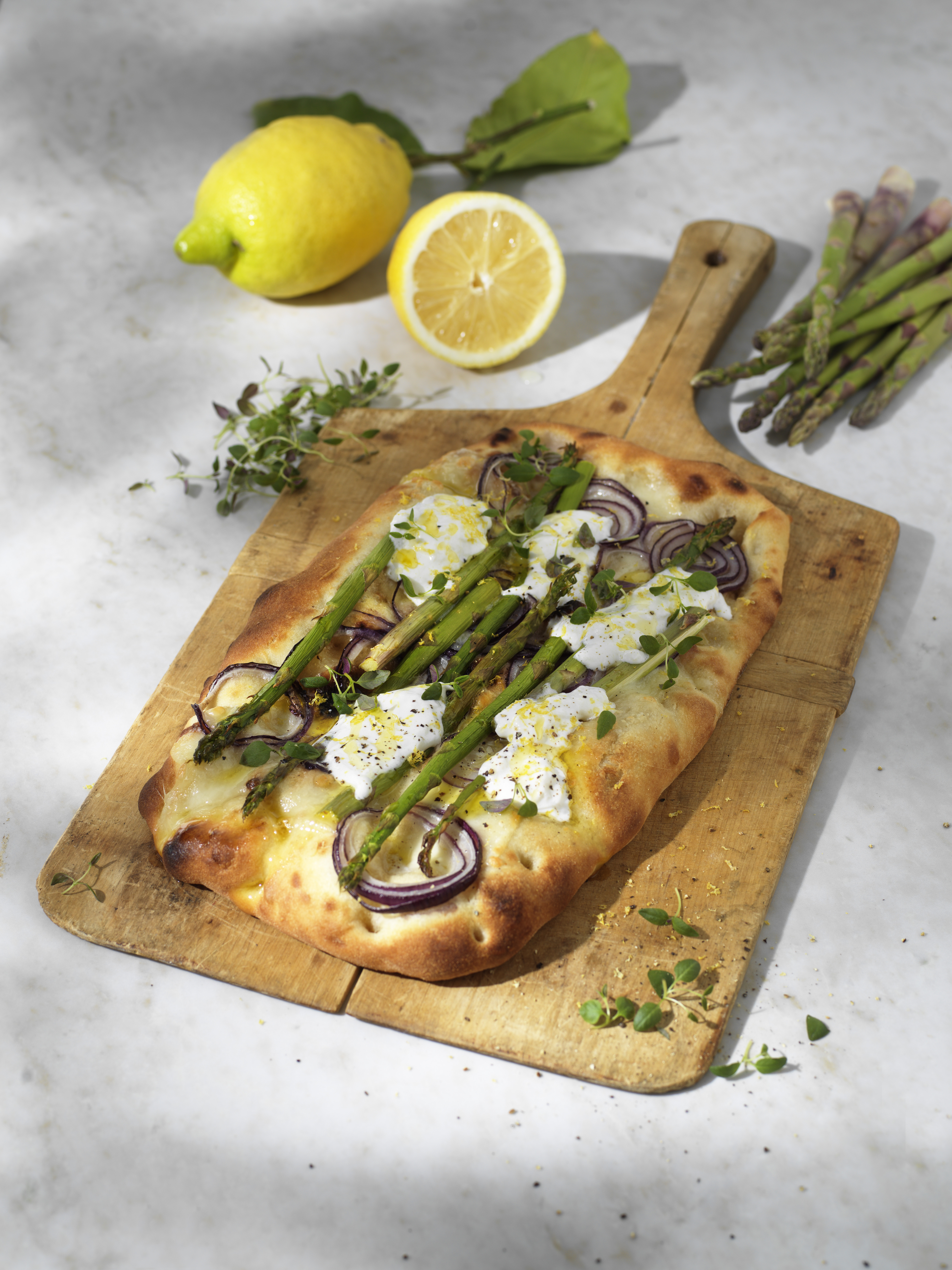Krispig sparris, krämig burrata och frasigt bröd är en oemotståndlig kombination. Den här pinsan passar till lunch, till middag, mellis och som drinktilltugg, skuren i mindre bitar. Så gott, enkelt och snabblagat!