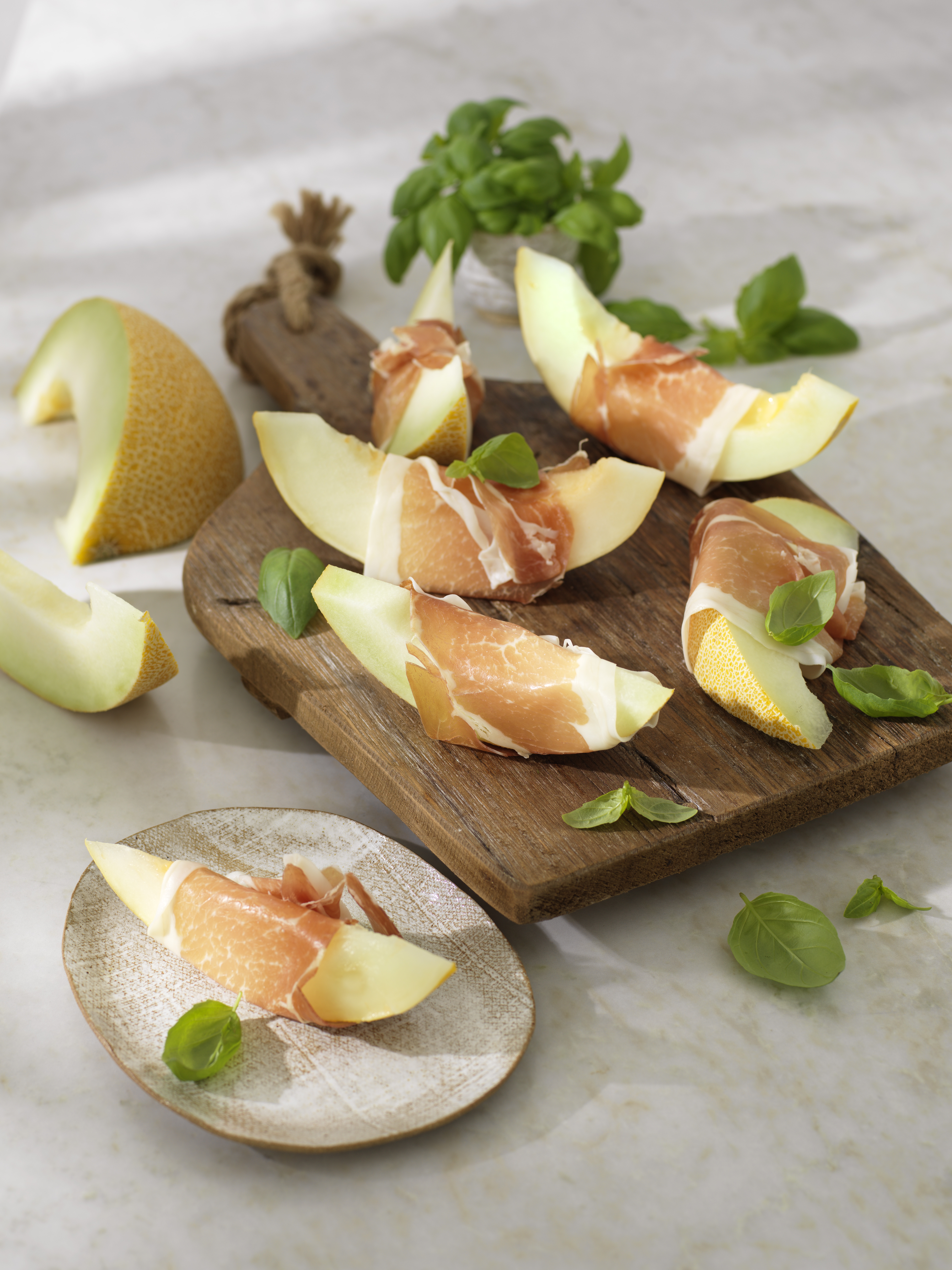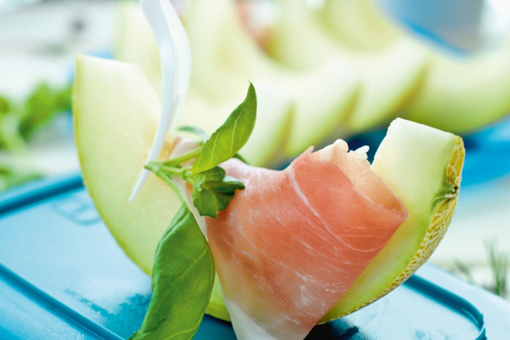 Prosciutto med melon och basilika