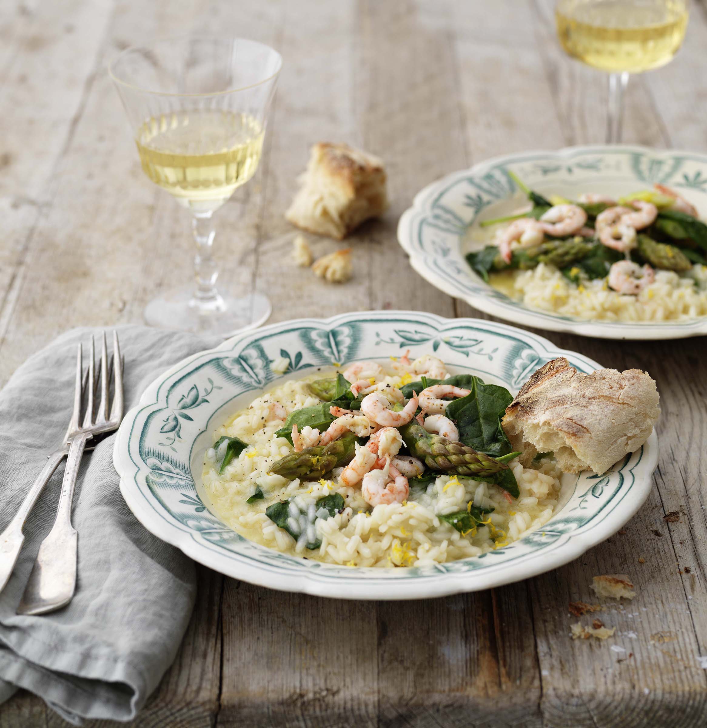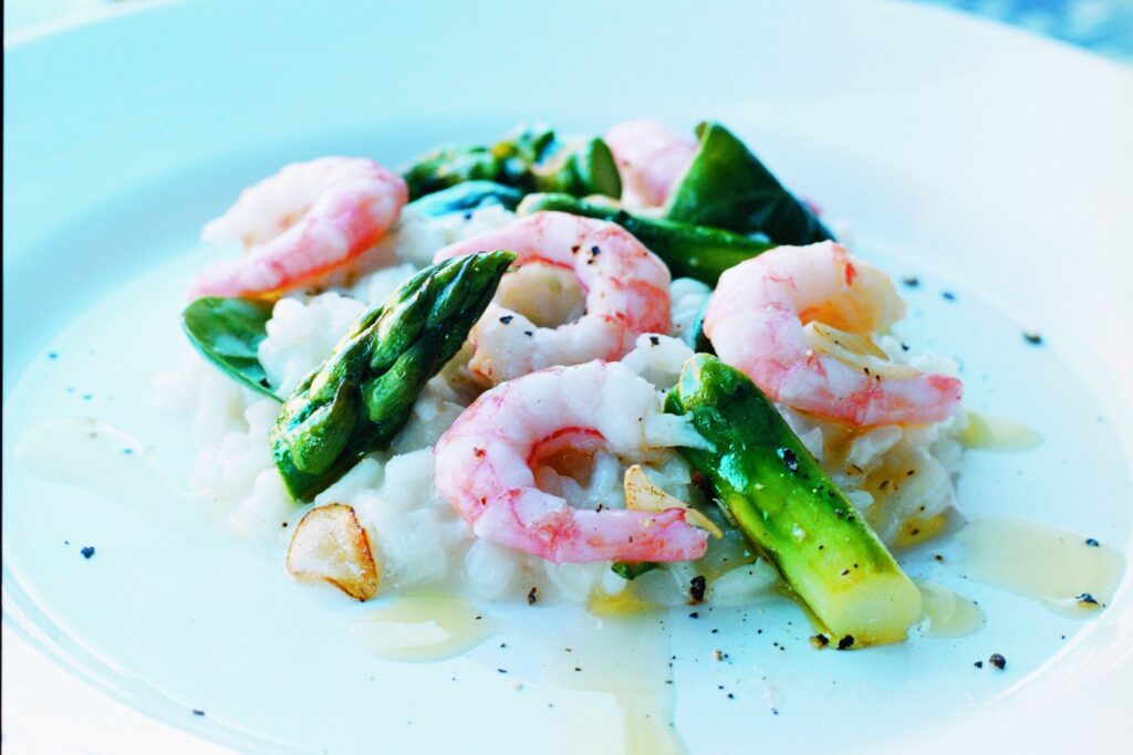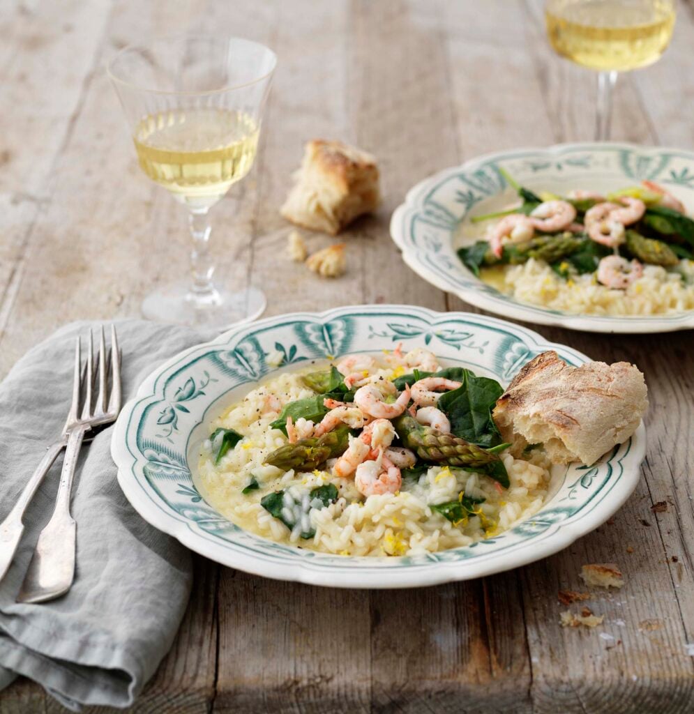 Risotto con Asparagi, Gamberetti e Spinaci – en risotto för dig som längtar efter grön sparris på våren och älskar räkor!