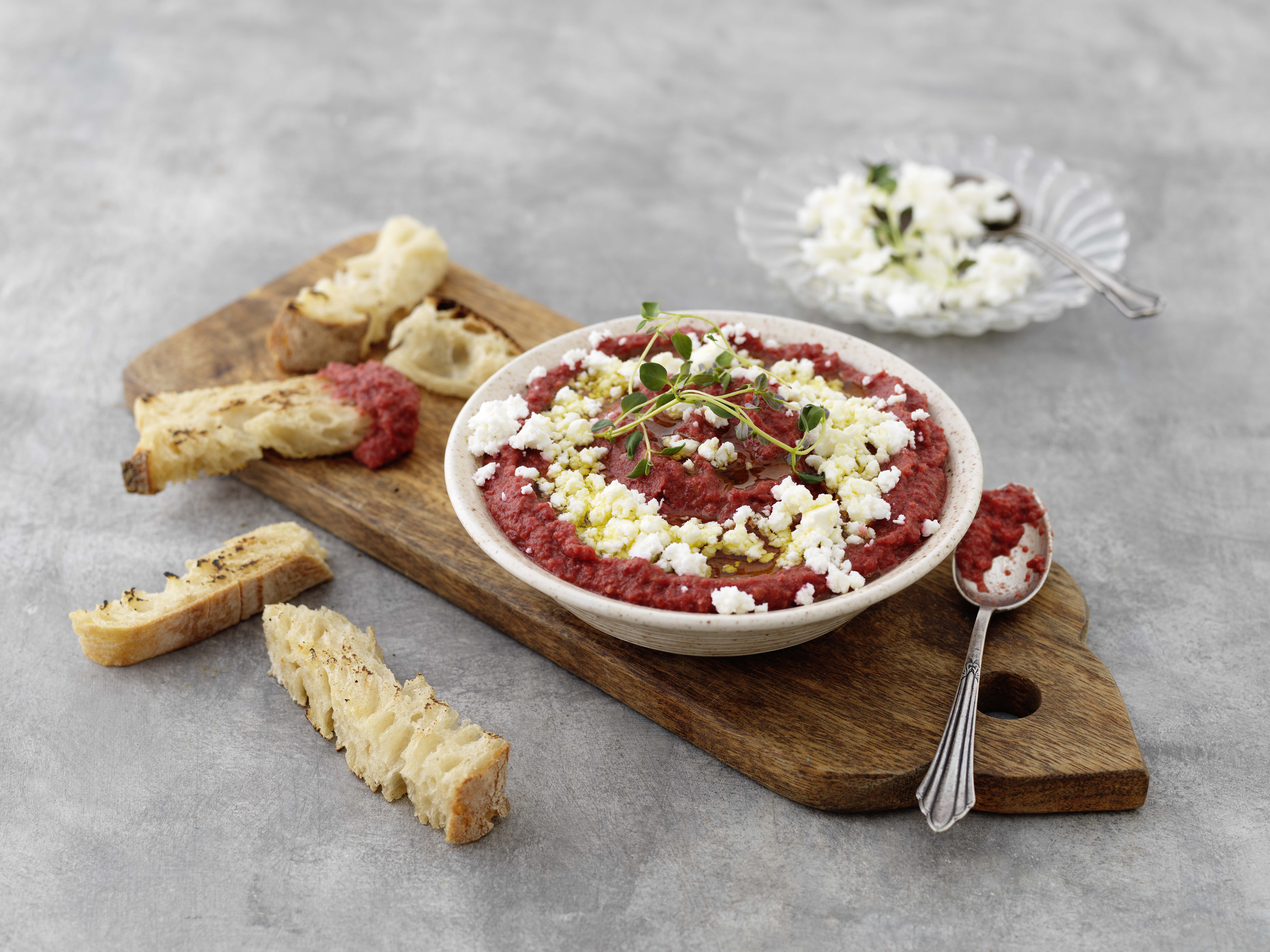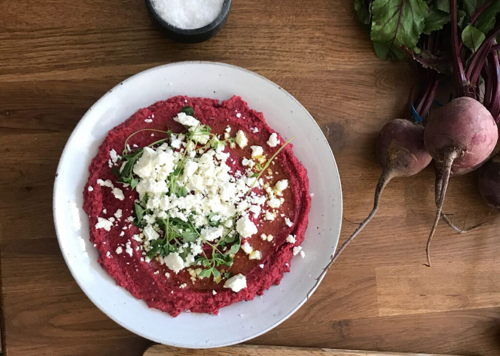 Rödbetshummus med smulad fetaost
