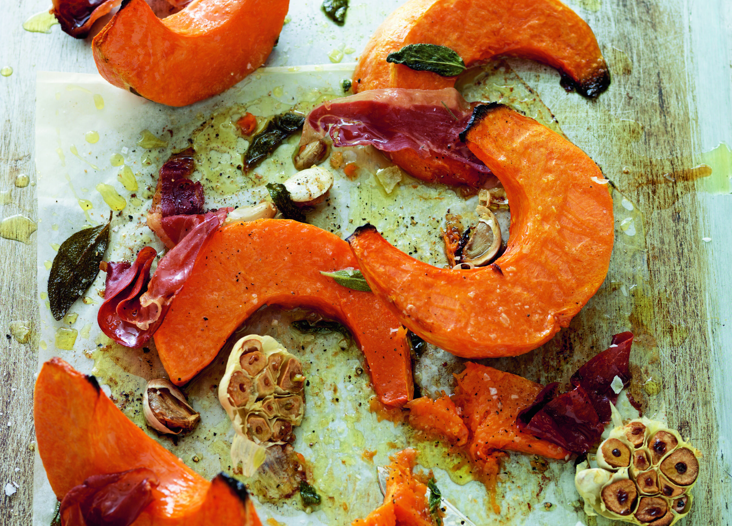 Servera gärna prosciutto till den rostade pumpan. Sältan bryter av gott till sötman i pumpan.