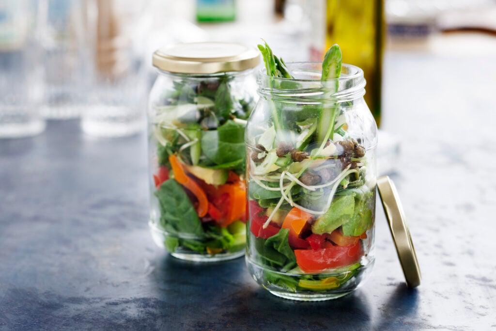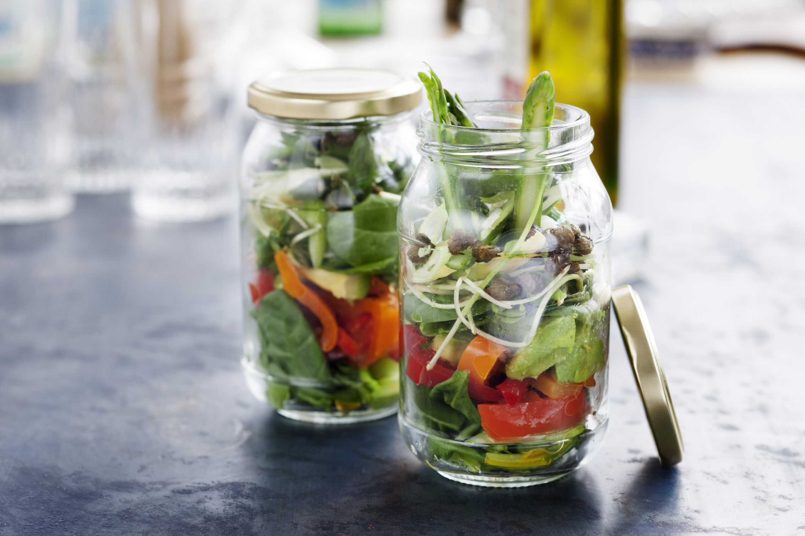 Sallad med avokado och sparris i burk. Perfekt att ta med sig som matlåda.